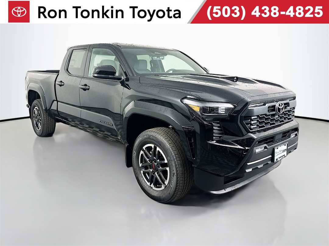 2025 Toyota Tacoma 2.4L 4-Cylinder 8-Speed Automatic 4WD TRD Sport 4D Double Cab Black 3.583 Axle Ratio, 4-Wheel Disc Brakes, 6 Speakers, ABS brakes, Air Conditioning, All Weather Floor Liners (TMS), Alloy wheels, AM/FM radio: SiriusXM, Anti-whiplash front head restraints, Apple CarPlay/Android Auto, Auto High-beam Headlights, Auto-dimming Rear-View mirror, Automatic temperature control, Bed Step (TMS), Black Badge Overlay (TMS), Black Tailgate Insert (TMS), Brake assist, Bumpers: body-color, Door Edge Film (TMS), Door Panel Scuff Protector (TMS), Driver door bin, Driver vanity mirror, Dual front impact airbags, Dual front side impact airbags, Electronic Stability Control, Emergency communication system: Safety Connect (1-year trial), Exterior Parking Camera Rear, Fabric Seat Trim, Four wheel independent suspension, Front anti-roll bar, Front Bucket Seats, Front Center Armrest, Front fog lights, Front reading lights, Fully automatic headlights, Heated door mirrors, Heated Seats, Illuminated entry, JBL Premium Audio, Knee airbag, Leather Shift Knob, Leather steering wheel, Low tire pressure warning, Mudguards (TMS), Multimedia Screen Protector - Glass (TMS), Occupant sensing airbag, Outside temperature display, Overhead airbag, Overhead console, Panic alarm, Passenger door bin, Passenger vanity mirror, Power door mirrors, Power steering, Power windows, Radio: 8" Toyota Audio Multimedia, Rear step bumper, Rear window defroster, Remote keyless entry, Security system, SofTex Seat Trim, Speed control, Speed-sensing steering, Split folding rear seat, Spray-On Bed Liner (TMS), Steering wheel mounted audio controls, Tachometer, Telescoping steering wheel, Tilt steering wheel, Traction control, TRD Sport Package, Trip computer, Turn signal indicator mirrors, Variably intermittent wipers, Wheels: 18" TRD Sport Alloy. 19/23 City/Highway MPGSome factory rebates may require factory financing, some special finance or lease rates are in lieu of factory rebates of specific make or model vehicles. Tax, title, licensing, documentation fee of $200, and dealer installed accessories are not included. Prices not available for Fleet or Commercial business's. Please confirm the accuracy of the included equipment by calling us prior to purchase. Price does not include Tax, Title, and License.