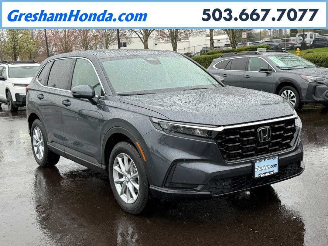 Please Note this price does not include any dealer added accessories. This vehicle is located at Tonkin Gresham Honda Please call to learn more! . 2026 Honda CR-V EX 4D Sport Utility 1.5L I4 DOHC 16V CVT AWD Meteorite Gray Metallic 4-Wheel Disc Brakes, 6 Speakers, ABS brakes, Adaptive Cruise Control: Adaptive Cruise Control (ACC) with Low-Speed Follow, Air Conditioning, Alloy wheels, AM/FM radio, Apple CarPlay/Android Auto, Auto High-beam Headlights, Automatic temperature control, Blind Spot Information (BSI) System warning, Brake assist, Bumpers: body-color, Cloth Seat Trim, Compass, Delay-off headlights, Driver door bin, Driver vanity mirror, Dual front impact airbags, Dual front side impact airbags, Electronic Stability Control, Exterior Parking Camera Rear, Four wheel independent suspension, Front anti-roll bar, Front Bucket Seats, Front Center Armrest, Front dual zone A/C, Front reading lights, Fully automatic headlights, Heated door mirrors, Heated Front Bucket Seats, Heated front seats, Illuminated entry, Knee airbag, Low tire pressure warning, Occupant sensing airbag, Outside temperature display, Overhead airbag, Overhead console, Panic alarm, Passenger door bin, Passenger vanity mirror, Power door mirrors, Power driver seat, Power moonroof, Power steering, Power windows, Radio data system, Radio: 240-Watt AM/FM Audio System, Rear anti-roll bar, Rear reading lights, Rear seat center armrest, Rear side impact airbag, Rear window defroster, Rear window wiper, Remote keyless entry, Security system, Speed control, Speed-sensing steering, Speed-Sensitive Wipers, Split folding rear seat, Spoiler, Steering wheel mounted audio controls, Tachometer, Telescoping steering wheel, Tilt steering wheel, Traction control, Trip computer, Turn signal indicator mirrors, Variably intermittent wipers, Wheels: 18" Sparkle Silver.