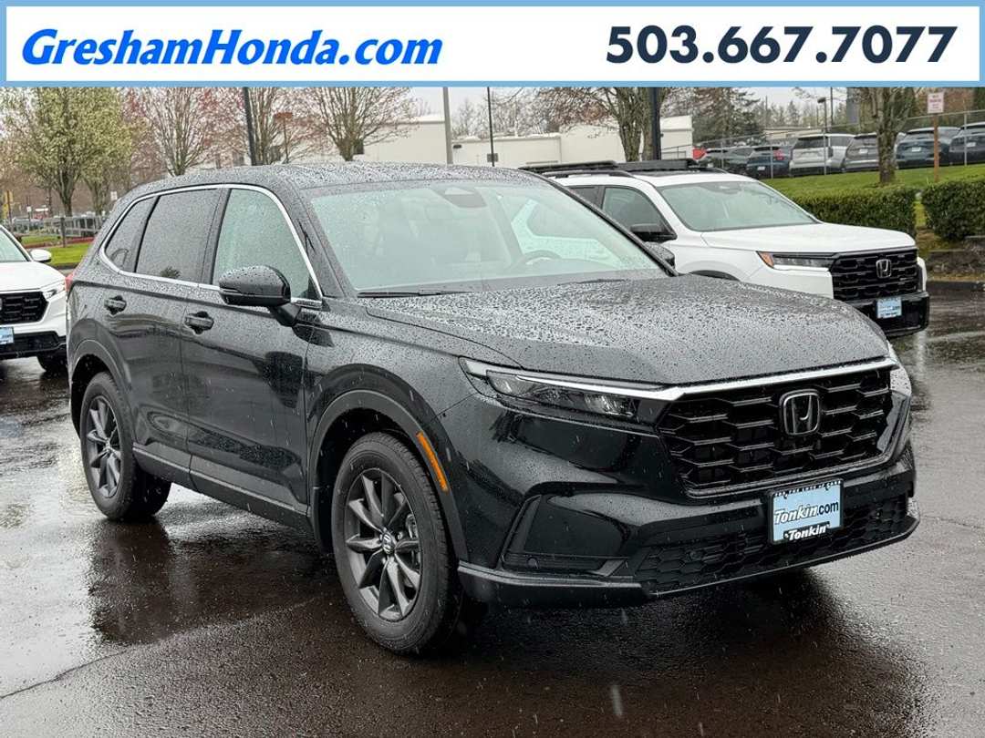 Please Note this price does not include any dealer added accessories. This vehicle is located at Tonkin Gresham Honda Please call to learn more! . 2026 Honda CR-V EX-L 4D Sport Utility 1.5L I4 DOHC 16V CVT AWD Crystal Black Pearl 4-Wheel Disc Brakes, 8 Speakers, ABS brakes, Adaptive Cruise Control: Adaptive Cruise Control (ACC) with Low-Speed Follow, Air Conditioning, Alloy wheels, AM/FM radio, Apple CarPlay/Android Auto, Auto High-beam Headlights, Auto-dimming Rear-View mirror, Automatic temperature control, Blind Spot Information (BSI) System warning, Brake assist, Bumpers: body-color, Compass, Delay-off headlights, Driver door bin, Driver vanity mirror, Dual front impact airbags, Dual front side impact airbags, Electronic Stability Control, Exterior Parking Camera Rear, Four wheel independent suspension, Front anti-roll bar, Front Bucket Seats, Front Center Armrest, Front dual zone A/C, Front reading lights, Fully automatic headlights, Heated door mirrors, Heated Front Bucket Seats, Heated front seats, Illuminated entry, Knee airbag, Leather Seat Trim, Leather Shift Knob, Leather steering wheel, Low tire pressure warning, Memory seat, Occupant sensing airbag, Outside temperature display, Overhead airbag, Overhead console, Panic alarm, Passenger door bin, Passenger vanity mirror, Power door mirrors, Power driver seat, Power Liftgate, Power moonroof, Power passenger seat, Power steering, Power windows, Radio data system, Radio: 320-Watt AM/FM Audio System, Rear anti-roll bar, Rear reading lights, Rear seat center armrest, Rear side impact airbag, Rear window defroster, Rear window wiper, Remote keyless entry, Security system, Speed control, Speed-sensing steering, Speed-Sensitive Wipers, Split folding rear seat, Spoiler, Steering wheel mounted audio controls, Tachometer, Telescoping steering wheel, Tilt steering wheel, Traction control, Trip computer, Turn signal indicator mirrors, Variably intermittent wipers, Wheels: 18" Shark Grey.
