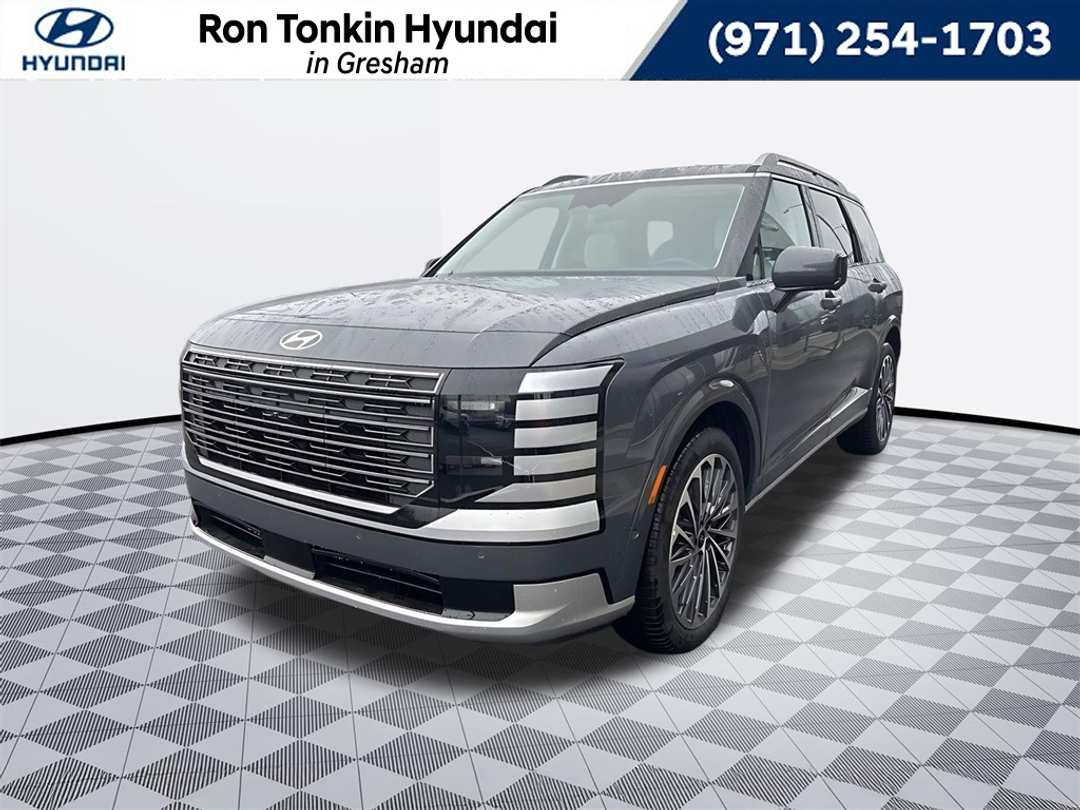 2026 Hyundai Palisade Calligraphy V6 8-Speed Automatic AWD 4D Sport Utility Ecotronic Gray Pearl 100W Charging Cable, 14 Speakers, 3rd row seats: split-bench, 4-Wheel Disc Brakes, ABS brakes, Air Conditioning, Alloy wheels, AM/FM radio: SiriusXM, Apple CarPlay & Android Auto, Audio memory, Auto High-beam Headlights, Auto-dimming door mirrors, Auto-dimming Rear-View mirror, Auto-leveling suspension, Automatic temperature control, Brake assist, Bumpers: body-color, Cargo Cover, Cargo Net, Cargo Tray, Carpeted Floor Mats, Compass, Delay-off headlights, Driver door bin, Driver vanity mirror, Dual front impact airbags, Dual front side impact airbags, Electronic Stability Control, Emergency communication system: None, Exterior Parking Camera Rear, First Aid Kit, Four wheel independent suspension, Front anti-roll bar, Front Bucket Seats, Front Center Armrest, Front dual zone A/C, Front reading lights, Fully automatic headlights, Garage door transmitter: HomeLink, Genuine wood console insert, Genuine wood dashboard insert, Heads-Up Display, Heated and Ventilated Front Bucket Seats, Heated door mirrors, Heated front seats, Heated rear seats, Heated steering wheel, HVAC memory, Illuminated entry, Knee airbag, Leather steering wheel, Low tire pressure warning, Memory seat, Navigation System, Occupant sensing airbag, Option Group 01, Outside temperature display, Overhead airbag, Overhead console, Panic alarm, Passenger door bin, Passenger vanity mirror, Power door mirrors, Power driver seat, Power Liftgate, Power moonroof, Power passenger seat, Power steering, Power windows, Premium Nappa Leather Seat Trim, Radio data system, Radio: Infotainment Navigation System, Rain sensing wipers, Rear air conditioning, Rear anti-roll bar, Rear audio controls, Rear reading lights, Rear side impact airbag, Rear window defroster, Rear window wiper, Reclining 3rd row seat, Remote keyless entry, Security system, Speed control, Split folding rear seat, Spoiler, Steering wheel mounted audio controls, Tachometer, Telescoping steering wheel, Tilt steering wheel, Traction control, Trip computer, Turn signal indicator mirrors, Variably intermittent wipers, Ventilated front seats, Ventilated rear seats, Wheels: 21" x 8.5J Alloy. Call for availability. Come in to Ron Tonkin Gresham Hyundai to test drive today! DA2028 View our entire inventory at https://www.rontonkinhyundai.com/ Pricing includes all applicable factory rebates, and discounts, buyer must finance through HMFA on approved credit.