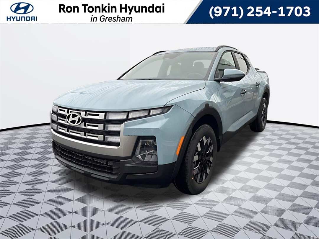 2026 Hyundai Santa Cruz SEL 2.5L I4 8-Speed Automatic with SHIFTRONIC AWD 4D Crew Cab Blue / Stone 18" x 7.5J Alloy Wheels, 4-Wheel Disc Brakes, 4.081 Axle Ratio, 6 Speakers, ABS brakes, Air Conditioning, Alloy wheels, AM/FM radio: SiriusXM, Apple CarPlay & Android Auto, Auto High-beam Headlights, Auto-leveling suspension, Automatic temperature control, Bed Fence, Bed Mat, Bed Rails, Brake assist, Bumpers: body-color, Carpeted Floor Mats, Compass, Delay-off headlights, Driver door bin, Driver vanity mirror, Dual front impact airbags, Dual front side impact airbags, Electronic Stability Control, Emergency communication system: None, Exterior Parking Camera Rear, First Aid Kit, Four wheel independent suspension, Front anti-roll bar, Front Bucket Seats, Front Center Armrest, Front dual zone A/C, Front reading lights, Fully automatic headlights, H-Tex Leatherette Seat Trim, Heated door mirrors, Heated Front Bucket Seats, Heated front seats, Illuminated entry, Low tire pressure warning, Occupant sensing airbag, Option Group 01, Outside temperature display, Overhead airbag, Overhead console, Panic alarm, Passenger door bin, Passenger vanity mirror, Power door mirrors, Power driver seat, Power moonroof, Power steering, Power windows, Radio data system, Radio: AM/FM/HD Audio System, Rear anti-roll bar, Rear reading lights, Rear side impact airbag, Rear step bumper, Rear window defroster, Remote keyless entry, Security system, Speed control, Speed-sensing steering, Split folding rear seat, Spoiler, Steering wheel mounted audio controls, Tachometer, Telescoping steering wheel, Tilt steering wheel, Traction control, Trip computer, Turn signal indicator mirrors, Variably intermittent wipers. Call for availability. Come in to Ron Tonkin Gresham Hyundai to test drive today! DA2028 View our entire inventory at https://www.rontonkinhyundai.com/ Pricing includes all applicable factory rebates, and discounts, buyer must finance through HMFA on approved credit. Price excludes tax, title, license, doc fee and dealer added accessories. Price includes: $1750 - Retail Bonus Cash. Exp. 03/02/2026