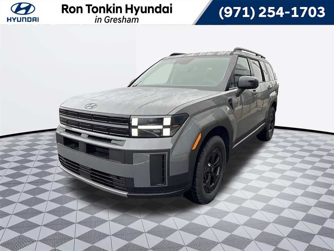 2026 Hyundai Santa Fe XRT 2.5L I4 8-Speed Automatic with SHIFTRONIC AWD 4D Sport Utility Hampton Gray AWD, Black Premium Synthetic, 3rd row seats: bench, 4-Wheel Disc Brakes, 6 Speakers, ABS brakes, Air Conditioning, All Season Fitted Liners, Alloy wheels, AM/FM radio: SiriusXM, Apple CarPlay & Android Auto, Auto High-beam Headlights, Automatic temperature control, Brake assist, Bumpers: body-color, Cargo Net, Cargo Organizer, Carpeted Floor Mats, Delay-off headlights, Driver door bin, Driver vanity mirror, Dual front impact airbags, Dual front side impact airbags, Electronic Stability Control, Emergency communication system, Exterior Parking Camera Rear, First Aid Kit, Four wheel independent suspension, Front anti-roll bar, Front Bucket Seats, Front Center Armrest, Front dual zone A/C, Front reading lights, Fully automatic headlights, H-Tex Leatherette Seat Trim, Heated door mirrors, Heated Front Bucket Seats, Heated front seats, Illuminated entry, Knee airbag, Leather steering wheel, Low tire pressure warning, Mudguards, Navigation System, Occupant sensing airbag, Option Group 01, Outside temperature display, Overhead airbag, Overhead console, Panic alarm, Passenger door bin, Passenger vanity mirror, Power door mirrors, Power driver seat, Power Liftgate, Power moonroof, Power steering, Power windows, Radio: AM/FM/HD Display Audio, Rear anti-roll bar, Rear seat center armrest, Rear side impact airbag, Rear window defroster, Rear window wiper, Remote keyless entry, Security system, Speed control, Speed-sensing steering, Split folding rear seat, Spoiler, Steering wheel mounted audio controls, Tachometer, Telescoping steering wheel, Tilt steering wheel, Traction control, Trip computer, Turn signal indicator mirrors, Variably intermittent wipers, Wheels: 18" x 7.5J Dark Alloy, AWD, Black Premium Synthetic. Call for availability. Come in to Ron Tonkin Gresham Hyundai to test drive today! DA2028 View our entire inventory at https://www.rontonkinhyundai.com/ Pricing includes all applicable factory rebates, and discounts, buyer must finance through HMFA on approved credit. Price excludes tax, title, license, doc fee and dealer added accessories. Price includes: $3500 - Hyundai HMF Dealer Choice : $3500 discount and 5.39% APR for 24 months. $44.05 per $1000 financed. Available to well qualified buyers who finance through Hyundai Motor Finance. H704. Exp. 03/02/2026