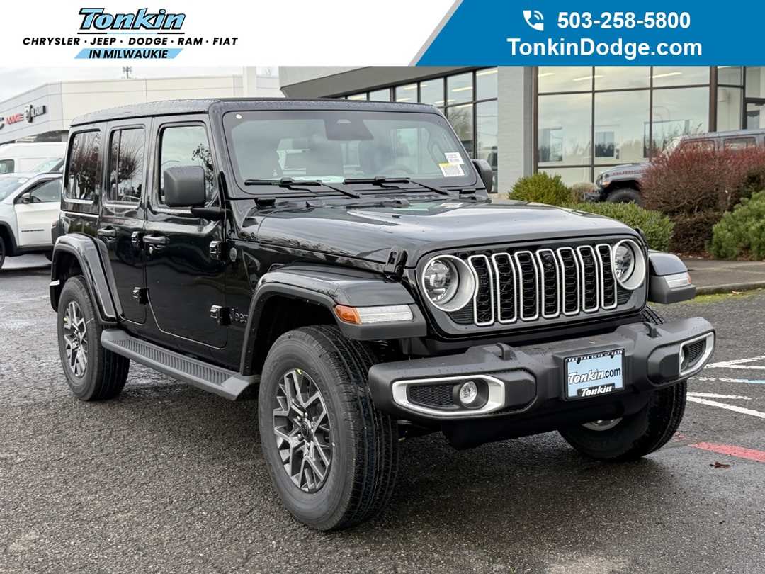 $3,983 off MSRP!2026 Jeep Wrangler Sahara Black Clearcoat 12.3" Touchscreen Display, 3.45 Overall Top Gear Ratio, 4-Wheel Disc Brakes, 4G LTE Wi-Fi Hot Spot, 8 Speakers, ABS brakes, Air Conditioning, Alpine Premium Audio System, AM/FM radio: SiriusXM with 360L, Apple CarPlay, Apple CarPlay/Android Auto, Auto High Beam Headlamp Control, Auto-Dimming Rear-View Mirror, Automatic temperature control, Aux Battery, Blind Spot and Cross Path Detection, Brake assist, Cloth Low-Back Bucket Seats, Compass, Connected Travel and Traffic Services, Connectivity - US/Canada, Custom Fuel Wheels and Off-Road Tires, Delay-off headlights, Driver door bin, Driver vanity mirror, Dual front impact airbags, Dual front side impact airbags, Electronic Stability Control, Emergency communication system: Jeep Connect, For More Info, Call 800-643-2112, Front anti-roll bar, Front Bucket Seats, Front Center Armrest w/Storage, Front dual zone A/C, Front fog lights, Front License Plate Bracket, Front reading lights, Fully automatic headlights, Google Android Auto, GPS Navigation, Hard Seat Back, HD Radio, Heated door mirrors, Heated front seats, Heated steering wheel, Heavy Duty Suspension with Gas Shocks, Illuminated entry, Integrated Center Stack Radio, Integrated Off-Road Camera, Integrated roll-over protection, Integrated Voice Command with Bluetooth, Leather Wrapped Park Brake Handle, Leather Wrapped Shift Knob, Low tire pressure warning, McKinley Trimmed Seats, MOPAR All-Weather Floor Mats, Myflexcare Service Plan, Non-Lock Fuel Cap Without Discriminator, Occupant sensing airbag, Outside temperature display, Overhead airbag, Panic alarm, ParkSense Rear Park Assist System, ParkView Rear Back-Up Camera, Passenger door bin, Passenger vanity mirror, Power 4-Way Driver Lumbar Adjust, Power 4-Way Passenger Lumbar Adjust, Power Adjust 8-Way Driver Seat, Power Adjust 8-Way Front Passenger Seat, Power door mirrors, Power steering, Power Top Quarter Window Storage Bag, Power windows, Quick Order Package 24G, Radio data system, Radio: Uconnect 5 Navigation with 12.3" Display, Radio: Uconnect 5 with 12.3" Display, Rear anti-roll bar, Rear reading lights, Rear Window Defroster, Rear Window Wiper/Washer, Remote keyless entry, Removable Rear Quarter Windows, Sahara Popular Equipment Group, Security system, Side Steps, SiriusXM Radio Service, SiriusXM with 360L, Sky One-Touch Power Top, Speed control, Split folding rear seat, Steering wheel mounted audio controls, Stop-Start Dual Battery System, Tachometer, Telescoping steering wheel, Tilt steering wheel, Traction control, Trip computer, Universal Garage Door Opener, Variably intermittent wipers, Voltmeter, Wheels: 18" x 7.5" Machine/Painted Gray.