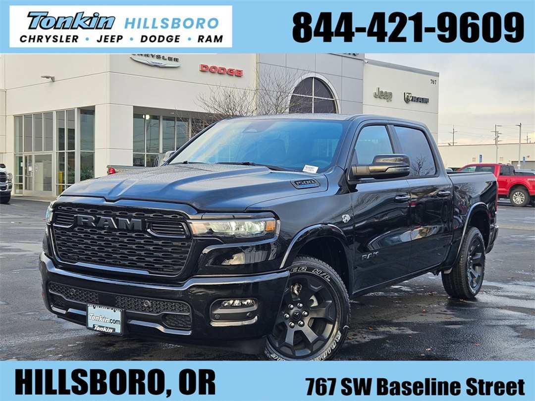 2026 Ram 1500 Big Horn/Lone Star Diamond Black Crystal Pearlcoat HEMI 5.7L V8 Multi Displacement VVT eTorque 4WD 8-Speed Automatic115V Auxiliary Power Outlet, 115V Auxiliary Rear Power Outlet, 12" Touchscreen Display, 2nd Row in Floor Storage Bins, 3 Rear Seat Head Restraints, 33 Gallon Fuel Tank, 4 Way Front Headrests, 4-Wheel Disc Brakes, 400W Inverter, 48V Belt Starter Generator, 4G LTE Wi-Fi Hot Spot, 6 Speakers, 9 Amplified Speakers with Subwoofer, ABS brakes, Accent Color Door Handles, Accent Color Premium Power Mirrors, Accent Color Tailgate Handle, Air Conditioning, Air Conditioning ATC with Dual Zone Control, Alloy wheels, AM/FM radio, Anti-Spin Differential Rear Axle, Apple CarPlay, Apple CarPlay/Android Auto, Auto High-beam Headlights, Auto Power-Folding Mirrors, Auto-Dimming Exterior Driver Mirror, Auto-Dimming Rear-View Mirror, Big Horn Level 2 Equipment Group, Black Exterior Mirrors, Black Exterior Truck Badging, Black Headlamp Bezels, Black Interior Accents, Black Painted Exterior Mirrors Caps, Black Premium Power Mirrors, Black Tail Lamp Bezels, Body Color Fender Flares, Body Color Front Bumper, Body Color Rear Bumper with Step Pads, Brake assist, Bucket Seats, Bumpers: chrome, Center Console Parts Module, Cloth Bucket Seats, Cluster 7.0" TFT Color Display, Compass, Configurable Drive Mode, Connected Travel and Traffic Services, Connectivity - US/Canada, Convex Wide-Angle Exterior Mirror Insert, Delay-off headlights, Deluxe Cloth Bucket Seats, Disassociated Touchscreen Display, Driver door bin, Dual Exhaust with Black Tips, Dual front impact airbags, Dual front side impact airbags, Electronic Stability Control, Exterior Mirrors Courtesy Lamps, Exterior Mirrors with Heating Element, Exterior Mirrors with Supplemental Signals, Front anti-roll bar, Front Bucket Seats, Front Center Armrest w/Storage, Front fog lights, Front License Plate Bracket, Front reading lights, Front Seat Back Map Pockets, Front wheel independent suspension, Full Length Floor Console, Fully automatic headlights, Global Telematics Box Module, Glove Box Lamp, Google Android Auto, GPS Antenna Input, GPS Navigation, Grille Black Surround Black Mesh, HD Radio, Heated door mirrors, Heated Front Seats, Heated Steering Wheel, Illuminated entry, Integrated Center Stack Radio, Integrated Voice Command with Bluetooth, Leather Wrapped Steering Wheel, LED Dome Lamp with on/Off Switch, LED Footwell Lighting, Low tire pressure warning, Manual Adjust 4-Way Driver Seat, Manual Adjust 4-Way Front Passenger Seat, Manual Folding Exterior Mirrors, Media Hub with 2 Charge Only USBs, MyFlexCare Service Plan, Night Edition, Occupant sensing airbag, Outside temperature display, Overhead airbag, Overhead console, Overhead LED Lamps, Panic alarm, ParkView Rear Back-Up Camera, Passenger door bin, Passenger vanity mirror, Power 2-Way Driver Lumbar Adjust, Power Adjust 8-Way Driver Seat, Power Adjustable Pedals, Power door mirrors, Power steering, Power windows, Premium Overhead Console, Quick Order Package 27Z Big Horn, Radio data system, Radio: Uconnect 5 Navigation with 12.0" Display, Radio: Uconnect 5 W with 8.4" Display, RAM Grille Badge - Black, RAM Grille Badge - Chrome, Rear 60/40 Folding Seat, Rear anti-roll bar, Rear Center Armrest, Rear Power Sliding Window, Rear step bumper, Rear Window Defroster, Remote keyless entry, Remote Tailgate Release, Security Alarm, SiriusXM Radio Service, SiriusXM with 360L, Speed control, Steering Wheel Mounted Audio Controls, Sun Visors with Illuminated Vanity Mirrors, Supplier Part Tracking (J-1), Tachometer, Telescoping steering wheel, Tilt steering wheel, Traction control, Trailer Brake Control, Trip computer, Universal Garage Door Opener, USB Host Flip, Variably intermittent wipers, Voltmeter, Wheels: 20" x 9.0" Aluminum Painted Clad. Price includes: $3500 - 2026 National Retail Consumer Cash . Exp. 03/02/2026