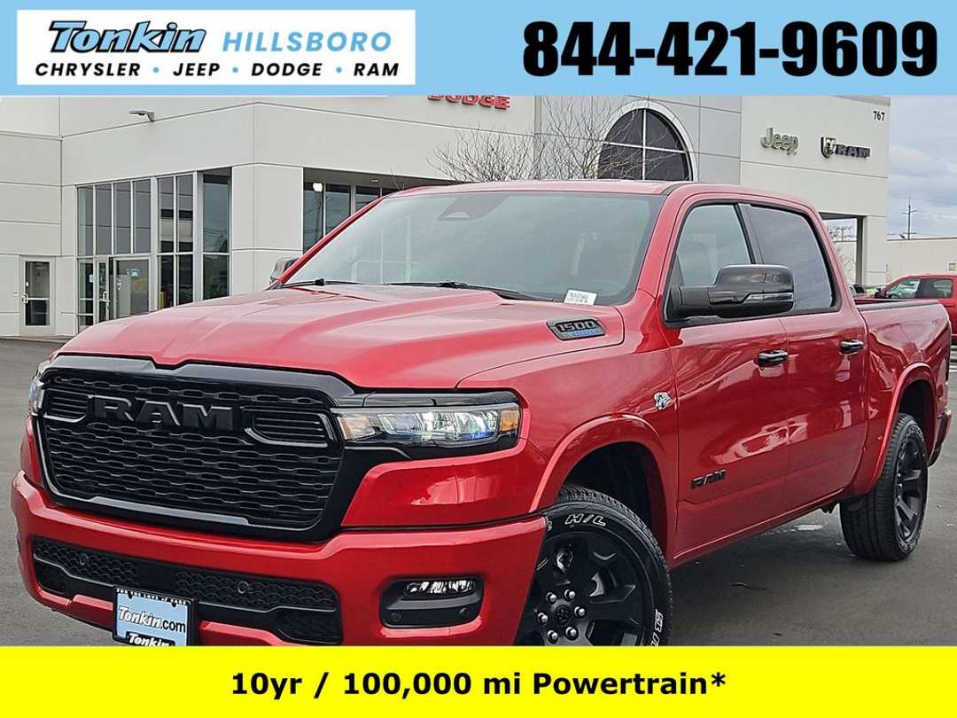 2026 Ram 1500 Big Horn/Lone Star Molten Red Pearlcoat HEMI 5.7L V8 Multi Displacement VVT eTorque 4WD 8-Speed Automatic115V Auxiliary Power Outlet, 115V Auxiliary Rear Power Outlet, 12" Touchscreen Display, 2nd Row in Floor Storage Bins, 3 Rear Seat Head Restraints, 33 Gallon Fuel Tank, 4 Way Front Headrests, 4-Wheel Disc Brakes, 400W Inverter, 48V Belt Starter Generator, 4G LTE Wi-Fi Hot Spot, 6 Speakers, 9 Amplified Speakers with Subwoofer, ABS brakes, Accent Color Door Handles, Accent Color Premium Power Mirrors, Accent Color Tailgate Handle, Air Conditioning, Air Conditioning ATC with Dual Zone Control, Alloy wheels, AM/FM radio, Anti-Spin Differential Rear Axle, Apple CarPlay, Apple CarPlay/Android Auto, Auto High-beam Headlights, Auto Power-Folding Mirrors, Auto-Dimming Exterior Driver Mirror, Auto-Dimming Rear-View Mirror, Big Horn Level 2 Equipment Group, Black Exterior Mirrors, Black Exterior Truck Badging, Black Headlamp Bezels, Black Interior Accents, Black Painted Exterior Mirrors Caps, Black Premium Power Mirrors, Black Tail Lamp Bezels, Body Color Fender Flares, Body Color Front Bumper, Body Color Rear Bumper with Step Pads, Brake assist, Bucket Seats, Bumpers: chrome, Center Console Parts Module, Cloth Bucket Seats, Cluster 12" TFT Color Display, Cluster 7.0" TFT Color Display, Compass, Configurable Drive Mode, Connected Travel and Traffic Services, Connectivity - US/Canada, Convex Wide-Angle Exterior Mirror Insert, Delay-off headlights, Deluxe Cloth Bucket Seats, Disassociated Touchscreen Display, Driver door bin, Dual Exhaust with Black Tips, Dual front impact airbags, Dual front side impact airbags, Electronic Stability Control, Exterior Mirrors Courtesy Lamps, Exterior Mirrors with Heating Element, Exterior Mirrors with Supplemental Signals, Front anti-roll bar, Front Bucket Seats, Front Center Armrest w/Storage, Front fog lights, Front reading lights, Front Seat Back Map Pockets, Front wheel independent suspension, Full Length Floor Console, Fully automatic headlights, Global Telematics Box Module, Glove Box Lamp, Google Android Auto, GPS Antenna Input, GPS Navigation, Grille Black Surround Black Mesh, HD Radio, Heated door mirrors, Heated Front Seats, Heated Steering Wheel, Illuminated entry, Integrated Center Stack Radio, Integrated Voice Command with Bluetooth, Leather Wrapped Steering Wheel, LED Dome Lamp with on/Off Switch, LED Footwell Lighting, Low tire pressure warning, Manual Adjust 4-Way Driver Seat, Manual Adjust 4-Way Front Passenger Seat, Manual Folding Exterior Mirrors, Media Hub with 2 Charge Only USBs, MyFlexCare Service Plan, Night Edition, Occupant sensing airbag, Outside temperature display, Overhead airbag, Overhead console, Overhead LED Lamps, Panic alarm, ParkView Rear Back-Up Camera, Passenger door bin, Passenger vanity mirror, Power 2-Way Driver Lumbar Adjust, Power Adjust 8-Way Driver Seat, Power Adjustable Pedals, Power door mirrors, Power steering, Power windows, Premium Overhead Console, Quick Order Package 27Z Big Horn, Radio data system, Radio: Uconnect 5 Navigation with 12.0" Display, Radio: Uconnect 5 W with 8.4" Display, RAM Grille Badge - Black, RAM Grille Badge - Chrome, Rear 60/40 Folding Seat, Rear anti-roll bar, Rear Center Armrest, Rear Power Sliding Window, Rear step bumper, Rear Window Defroster, Remote keyless entry, Remote Tailgate Release, Security Alarm, SiriusXM Radio Service, SiriusXM with 360L, Speed control, Steering Wheel Mounted Audio Controls, Sun Visors with Illuminated Vanity Mirrors, Supplier Part Tracking (J-1), Tachometer, Telescoping steering wheel, Tilt steering wheel, Traction control, Trip computer, Universal Garage Door Opener, USB Host Flip, Variably intermittent wipers, Voltmeter, Wheels: 20" x 9.0" Aluminum Painted Clad. Price includes: $1000 - 2026 West BC Engine Retail Bonus Cash. Exp. 04/30/2026 $3500 - 2026 National Retail Bonus Cash . Exp. 04/30/2026