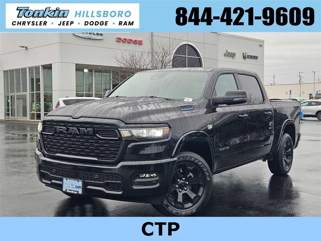 2026 Ram 1500 Big Horn/Lone Star Diamond Black Crystal Pearlcoat HEMI 5.7L V8 Multi Displacement VVT eTorque 4WD 8-Speed Automatic115V Auxiliary Power Outlet, 115V Auxiliary Rear Power Outlet, 12" Touchscreen Display, 2nd Row in Floor Storage Bins, 3 Rear Seat Head Restraints, 33 Gallon Fuel Tank, 4 Way Front Headrests, 4-Wheel Disc Brakes, 400W Inverter, 48V Belt Starter Generator, 4G LTE Wi-Fi Hot Spot, 6 Speakers, 9 Amplified Speakers with Subwoofer, ABS brakes, Accent Color Door Handles, Accent Color Premium Power Mirrors, Accent Color Tailgate Handle, Air Conditioning, Air Conditioning ATC with Dual Zone Control, Alloy wheels, AM/FM radio, Anti-Spin Differential Rear Axle, Apple CarPlay, Apple CarPlay/Android Auto, Auto High-beam Headlights, Auto Power-Folding Mirrors, Auto-Dimming Exterior Driver Mirror, Auto-Dimming Rear-View Mirror, Big Horn Level 2 Equipment Group, Black Exterior Mirrors, Black Exterior Truck Badging, Black Headlamp Bezels, Black Interior Accents, Black Painted Exterior Mirrors Caps, Black Premium Power Mirrors, Black Tail Lamp Bezels, Body Color Fender Flares, Body Color Front Bumper, Body Color Rear Bumper with Step Pads, Brake assist, Bucket Seats, Bumpers: chrome, Center Console Parts Module, Cloth Bucket Seats, Cluster 12" TFT Color Display, Cluster 7.0" TFT Color Display, Compass, Configurable Drive Mode, Connected Travel and Traffic Services, Connectivity - US/Canada, Convex Wide-Angle Exterior Mirror Insert, Delay-off headlights, Deluxe Cloth Bucket Seats, Disassociated Touchscreen Display, Driver door bin, Dual Exhaust with Black Tips, Dual front impact airbags, Dual front side impact airbags, Electronic Stability Control, Exterior Mirrors Courtesy Lamps, Exterior Mirrors with Heating Element, Exterior Mirrors with Supplemental Signals, Front anti-roll bar, Front Bucket Seats, Front Center Armrest w/Storage, Front fog lights, Front License Plate Bracket, Front reading lights, Front Seat Back Map Pockets, Front wheel independent suspension, Full Length Floor Console, Fully automatic headlights, Global Telematics Box Module, Glove Box Lamp, Google Android Auto, GPS Antenna Input, GPS Navigation, Grille Black Surround Black Mesh, HD Radio, Heated door mirrors, Heated Front Seats, Heated Steering Wheel, Illuminated entry, Integrated Center Stack Radio, Integrated Voice Command with Bluetooth, Leather Wrapped Steering Wheel, LED Dome Lamp with on/Off Switch, LED Footwell Lighting, Low tire pressure warning, Manual Adjust 4-Way Driver Seat, Manual Adjust 4-Way Front Passenger Seat, Manual Folding Exterior Mirrors, Media Hub with 2 Charge Only USBs, MyFlexCare Service Plan, Night Edition, Occupant sensing airbag, Outside temperature display, Overhead airbag, Overhead console, Overhead LED Lamps, Panic alarm, ParkView Rear Back-Up Camera, Passenger door bin, Passenger vanity mirror, Power 2-Way Driver Lumbar Adjust, Power Adjust 8-Way Driver Seat, Power Adjustable Pedals, Power door mirrors, Power steering, Power windows, Premium Overhead Console, Quick Order Package 27Z Big Horn, Radio data system, Radio: Uconnect 5 Navigation with 12.0" Display, Radio: Uconnect 5 W with 8.4" Display, RAM Grille Badge - Black, RAM Grille Badge - Chrome, Rear 60/40 Folding Seat, Rear anti-roll bar, Rear Center Armrest, Rear Power Sliding Window, Rear step bumper, Rear Window Defroster, Remote keyless entry, Remote Tailgate Release, Security Alarm, SiriusXM Radio Service, SiriusXM with 360L, Speed control, Steering Wheel Mounted Audio Controls, Sun Visors with Illuminated Vanity Mirrors, Supplier Part Tracking (J-1), Tachometer, Telescoping steering wheel, Tilt steering wheel, Traction control, Trip computer, Universal Garage Door Opener, USB Host Flip, Variably intermittent wipers, Voltmeter, Wheels: 20" x 9.0" Aluminum Painted Clad.