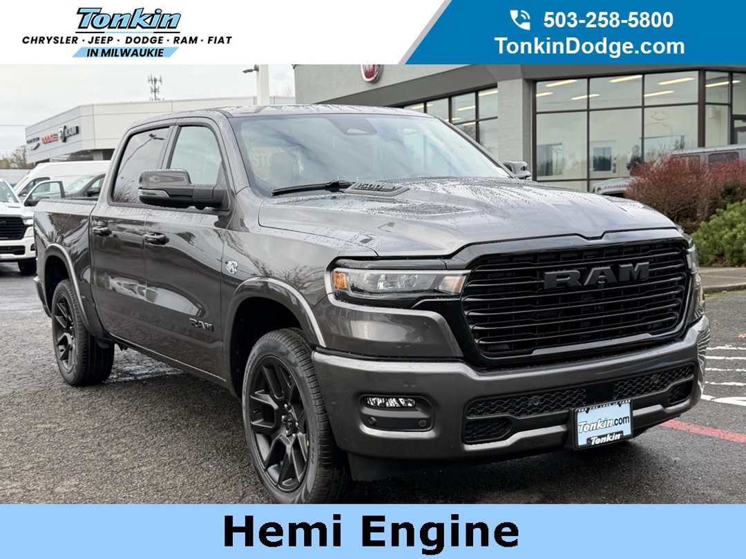 $13,743 off MSRP!2026 Ram 1500 Laramie Granite Crystal Metallic Clearcoat 10 Speakers, 14.4" Touchscreen Display, 4-Wheel Disc Brakes, 4G LTE Wi-Fi Hot Spot, ABS brakes, Accent Color Door Handles, Accent Color Premium Power Mirrors, Accent Color Tailgate Handle, Active Noise Control System, Adjustable pedals, Air Conditioning, AM/FM radio: SiriusXM with 360L, Anti-Spin Differential Rear Axle, Apple CarPlay/Android Auto, Audio memory, Auto High-beam Headlights, Auto Power-Folding Mirrors, Auto-dimming door mirrors, Auto-Dimming Exterior Driver Mirror, Auto-dimming Rear-View mirror, Automatic temperature control, Black Exterior Truck Badging, Black Headlamp Bezels, Black Interior Accents, Black Painted Exterior Mirrors Caps, Black Tail Lamp Bezels, Body Color Front Bumper, Body Color Rear Bumper with Step Pads, Brake assist, Bumpers: chrome, Chrome Exterior Mirrors, Cluster 12" TFT Color Display, Compass, Connected Travel and Traffic Services, Connectivity - US/Canada, Convex Wide-Angle Exterior Mirror Insert, Custom Fuel Wheels and Off-Road Tires, Delay-off headlights, Dome Dual LED Reading Lamp, Driver door bin, Driver vanity mirror, Dual Exhaust with Black Tips, Dual front impact airbags, Dual front side impact airbags, Dual-Pane Panoramic Sunroof, Electronic Stability Control, Exterior Mirrors Approach Lamps, Exterior Mirrors Courtesy Lamps, Exterior Mirrors with Heating Element, Exterior Mirrors with Memory, Exterior Mirrors with Supplemental Signals, Front anti-roll bar, Front Bucket Seats, Front Center Armrest w/Storage, Front dual zone A/C, Front fog lights, Front License Plate Bracket, Front Passenger Interactive Display, Front reading lights, Front wheel independent suspension, Fully automatic headlights, Garage door transmitter, GPS Navigation, Grille Surround 3 Black Texture 2 Black, Harman/Kardon 19 Speaker Premium Sound, Heated door mirrors, Heated front seats, Heated rear seats, Heated steering wheel, Illuminated entry, Integrated Center Stack Radio, Integrated Voice Command with Bluetooth, Laramie Level 2 Equipment Group, Leather steering wheel, Leather Trimmed Bucket Seats, LED Dome/Reading Lamp, Low tire pressure warning, Memory seat, MOPAR Front and Rear Rubber Floor Mats, MyFlexCare Service Plan, Navigation System, Night Edition, Occupant sensing airbag, Off-Road Information Pages, Outside temperature display, Overhead airbag, Overhead console, Panic alarm, ParkView Rear Back-Up Camera, Passenger door bin, Passenger vanity mirror, Pedal memory, Pirelli Brand Tires, Power door mirrors, Power driver seat, Power passenger seat, Power steering, Power Tailgate, Power windows, Proximity Approach/Departure Lamps, Quick Order Package 27H Laramie, Radio data system, Radio: Uconnect 5 Nav with 14.4" Display, Radio: Uconnect 5 Navigation with 12.0" Display, Rain Sensitive Windshield Wipers, RAM Grille Badge - Black, RAM Grille Badge - Chrome, Rear anti-roll bar, Rear reading lights, Rear seat center armrest, Rear step bumper, Remote keyless entry, Security system, SiriusXM Radio Service, SiriusXM with 360L, Speed control, Split folding rear seat, Sport Performance Hood, Steering wheel mounted audio controls, Tachometer, Telescoping steering wheel, Tilt steering wheel, Traction control, Trailer Brake Control, Trip computer, Turn signal indicator mirrors, USB Host Flip, Variably intermittent wipers, Ventilated front seats, Voltmeter, Wheels: 20" x 9" Premium Paint/Polish, Wheels: 22" x 9" Forged Aluminum. Price includes: $1000 - 2026 National Bonus Cash . Exp. 03/02/2026 $3500 - 2026 National Retail Consumer Cash . Exp. 03/02/2026