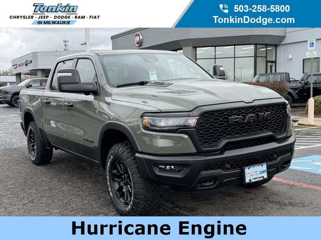 $14,000 off MSRP!2026 Ram 1500 Rebel Canyon Lake 10 Speakers, 115V Auxiliary Rear Power Outlet, 12-Way/1-Way Trailer Connector, 14.4" Touchscreen Display, 2-Door Passive Entry, Front Door Locks, 3.92 Rear Axle Ratio, 33 Gallon Fuel Tank, 4 Way Front Headrests, 4-Wheel Disc Brakes, 4G LTE Wi-Fi Hot Spot, ABS brakes, Accent Color Door Handles, Accent Color Premium Power Mirrors, Accent Color Tailgate Handle, Active Driving Assist System, Active Noise Control System, Advanced Safety Group II, Air Conditioning, AM/FM radio: SiriusXM with 360L, Apple CarPlay, Apple CarPlay/Android Auto, Auto High-beam Headlights, Auto Power-Folding Mirrors, Auto-Dimming Exterior Driver Mirror, Auto-Dimming Exterior Passenger Mirror, Auto-dimming Rear-View mirror, Automatic temperature control, Bed Utility Group, Black Exterior Mirrors, Black Painted Exterior Mirrors Caps, Black Power-Fold Trailer Tow Mirrors, Brake assist, Bucket Seats, Cloth/Vinyl Bucket Seats, Compass, Connected Travel and Traffic Services, Connectivity - US/Canada, Convex Wide-Angle Exterior Mirror Insert, Custom Fuel Wheels and Off-Road Tires, Delay-off headlights, Disassociated Touchscreen Display, Dome Dual LED Reading Lamp, Driver door bin, Driver Seat Memory, Driver vanity mirror, Drowsy Driver Detection, Dual front impact airbags, Dual front side impact airbags, Dual Wireless Charging Pad, Dual-Pane Panoramic Sunroof, Electronic Stability Control, Evasive Steer Assist, Exterior 115V AC Outlet, Exterior Mirrors Approach Lamps, Exterior Mirrors Courtesy Lamps, Exterior Mirrors with Heating Element, Exterior Mirrors with Memory, Exterior Mirrors with Supplemental Signals, Forward and Reverse Utility Lights, Front anti-roll bar, Front Bucket Seats, Front Center Armrest w/Storage, Front dual zone A/C, Front fog lights, Front License Plate Bracket, Front Passenger Interactive Display, Front reading lights, Front Seat Back Map Pockets, Front wheel independent suspension, Full Length Upgraded Floor Console, Fully automatic headlights, Garage door transmitter, Global Telematics Box Module, Google Android Auto, GPS Antenna Input, GPS Navigation, Harman/Kardon 19 Speaker Premium Sound, HD Radio, Heads-Up Display, Heated door mirrors, Heated Front Seats, Heated front seats, Heated Second Row Seats, Heated Steering Wheel, Heated steering wheel, Illuminated entry, Integrated Center Stack Radio, Integrated Voice Command with Bluetooth, Intersection Collision Assist System, Leather steering wheel, LED CHMSL Lamp, Low tire pressure warning, Manual Folding Exterior Mirrors, Manufacturer's Statement of Origin, Media Hub with 2 Charge Only USBs, Mirror Clearance/Running Lights, MOPAR 4 Adjustable Cargo Tie-Down Hooks, MOPAR Spray in Bedliner, Multi-Function Tailgate, Navigation System, Occupant sensing airbag, Off-Road Information Pages, Outside temperature display, Overhead airbag, Overhead console, Panic alarm, ParkView Rear Back-Up Camera, Passenger door bin, Passenger vanity mirror, Power 2-Way Driver Lumbar Adjust, Power 2-Way Passenger Lumbar Adjust, Power Adjust 8-Way Driver Seat, Power Adjust 8-Way Front Passenger Seat, Power Adjustable Pedals with Memory, Power door mirrors, Power driver seat, Power steering, Power Tailgate, Power Telescoping Mirrors, Power windows, Power-Adjustable Convex Aux Mirrors, Proximity Approach/Departure Lamps, Quick Order Package 21W Rebel, Radio data system, Radio: Uconnect 5 Nav with 14.4" Display, Radio: Uconnect 5 Navigation with 12.0" Display, Radio/Driver Seat/Mirrors/Pedals Memory, Rain Sensitive Windshield Wipers, RAM's Head Badge, Rear 60/40 Folding Seat, Rear anti-roll bar, Rear seat center armrest, Rear step bumper, Rear Window Defroster, Rebel Level 2 Equipment Group, Remote keyless entry, Security Alarm, SiriusXM Radio Service, SiriusXM with 360L, Smartphone as a Key Capable, Speed control, Split folding rear seat Price includes: $1000 - 2026 National Bonus Cash . Exp. 03/02/2026 $3500 - 2026 National Retail Consumer Cash . Exp. 03/02/2026