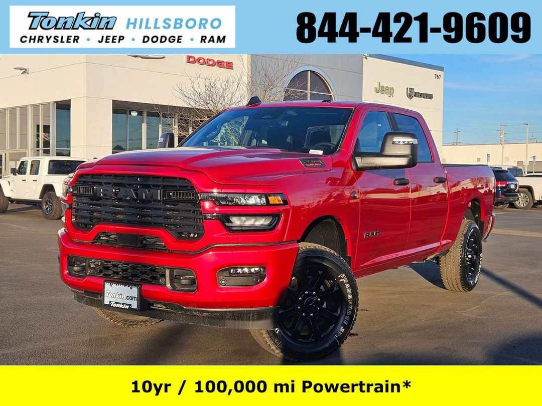 2026 Ram 2500 Big Horn Molten Red Pearlcoat 6.7L I6 4WD 8-Speed Automatic12" Touchscreen Display, 2 Way Rear Headrest Seat, 2nd Row in Floor Storage Bins, 4 Way Front Headrests, 4-Wheel Disc Brakes, 40/20/40 Split Bench Seat, 4G LTE Wi-Fi Hot Spot, 6 Speakers, 9 Alpine Speakers with Subwoofer, ABS brakes, Air Conditioning, Air Conditioning ATC with Dual Zone Control, Alexa Built-in, Alloy wheels, AM/FM radio: SiriusXM, Anti-Spin Differential Rear Axle, Apple CarPlay, Apple CarPlay/Android Auto, Auto Power-Folding Mirrors, Auto-Dimming Rear-View Mirror, Big Horn Level 1 Plus Equipment Group, Black Exterior Mirrors, Black Exterior Truck Badging, Black Interior Accents, Black Wheel Center Hub, Body Color Grille-Surround, Brake assist, Bumpers: chrome, Center Hub, Cloth 40/20/40 Bench Seat, Compass, Connected Travel and Traffic Services, Connectivity - US/Canada, Delay-off headlights, Disassociated Touchscreen Display, Driver door bin, Dual front impact airbags, Dual front side impact airbags, Dual Glove Boxes, Electronic Stability Control, Emergency Vehicle Alert System (EVAS), Exterior Mirrors Courtesy Lamps, Exterior Mirrors with Heating Element, Exterior Mirrors with Supplemental Signals, Foam Bottle Insert (door Trim Panel), Folding Flat Load Floor Storage, Footwell Courtesy Lamp, For Details, Visit DriveUconnect.com, For More Info, Call 800-643-2112, Forward and Reverse Utility Lights, Front anti-roll bar, Front Armrest with Cupholders, Front Center Armrest w/Storage, Front Center Seat Cushion Storage, Front fog lights, Front License Plate Bracket, Front reading lights, Front Seat Back Map Pockets, Fully automatic headlights, Global Telematics Box Module, Gloss Black Nostrils/Mic Black Grille, Glove Box Lamp, Google Android Auto, GPS Antenna Input, GPS Navigation, HD Radio, Heated door mirrors, Heated Front Seats, Heated Seats and Wheel Group, Heated Steering Wheel, Illuminated entry, Integrated Voice Command with Bluetooth, LED Bed Lighting, Locking Lower Glove Box, Low tire pressure warning, Luxury Steering Wheel, Manual Adjust 4-Way Driver Seat, Manual Adjust 4-Way Front Passenger Seat, Mirror Running Lights, MOPAR Deployable Bed Step, MOPAR Spray in Bedliner, MyFlexCare Service Diesel, Night Edition, Occupant sensing airbag, Off-Road Info Pages, Outside temperature display, Overhead airbag, Overhead console, Painted Front Bumper, Painted Rear Bumper, Panic alarm, ParkView Rear Back-Up Camera, Passenger door bin, Passenger vanity mirror, Power 2-Way Driver Lumbar Adjust, Power Adjust 8-Way Driver Seat, Power Adjust Mirrors, Power door mirrors, Power Heated Folding Telescopic Mirrors, Power steering, Power Telescoping Mirrors, Power windows, Power-Adjustable Convex Aux Mirrors, Premium Cloth 40/20/40 Bench Seat, Quick Order Package 24Z Big Horn, Radio data system, Radio: Uconnect 5 Navigation with 12.0" Display, Radio: Uconnect 5 with 8.4" Display, Rear 60/40 Folding Seat, Rear anti-roll bar, Rear Dome with on/Off Switch Lamp, Rear Folding Seat, Rear seat center armrest, Rear step bumper, Rear window defroster, Remote keyless entry, Remote Start System, Remote USB Port - Charge Only, Security system, Selectable Tire Fill Alert, SiriusXM Radio Service, SiriusXM with 360L, Speed control, Steering Wheel Mounted Audio Controls, Storage Tray, Tachometer, Tilt steering wheel, Traction control, Trailer Tow Pages, Trip computer, Turn signal indicator mirrors, Variably intermittent wipers, Voltmeter, Wheels: 18" x 8.0" Polished Aluminum, Wheels: 20" x 8.0" Black Painted Aluminum. Price includes: $1000 - 2026 National Bonus Cash . Exp. 04/30/2026