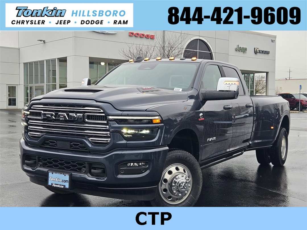 2026 Ram 3500 Laramie Forged Blue Metallic 6.7L I6 4WD 8-Speed Automatic#1 Seat Foam Cushion, 10 Speakers, 115V Auxiliary Rear Power Outlet, 14.4" Touchscreen Display, 17 Speaker Harman/Kardon Premium Sound, 2 Way Rear Headrest Seat, 2nd Row in Floor Storage Bins, 4 Way Front Headrests, 4-Wheel Disc Brakes, 4G LTE Wi-Fi Hot Spot, 50 Gallon Fuel Tank, 5th Wheel/Gooseneck Towing Prep Group, 6000# Front Axle with Hub Extension, ABS brakes, Active Lane Management System, Adaptive Steering System, Air Conditioning, Alexa Built-in, Alloy wheels, AM/FM radio: SiriusXM with 360L, Apple CarPlay, Apple CarPlay/Android Auto, Auto Adjust in Reverse Exterior Mirrors, Auto Dimming Exterior Passenger Mirror, Auto High Beam Headlamp Control, Auto Level Rear Air Suspension, Auto Power-Folding Mirrors, Auto-Dimming Exterior Mirrors, Auto-dimming Rear-View mirror, Automatic temperature control, Black Wheel Center Hub, Body Color Grille Surround, Box and Rear Fender Clearance Lamps, Brake assist, Bucket Seats, Bumpers: body-color, Center Hub, Center Stop Lamp with Cargo View Camera, Chrome Exterior Mirrors, Clearance Lamps, Compass, Connected Travel and Traffic Services, Connectivity - US/Canada, Delay-off headlights, Disassociated Touchscreen Display, Driver door bin, Driver vanity mirror, Drowsy Driver Detection, Dual front impact airbags, Dual front side impact airbags, Dual Rear Wheels, Dual Wireless Charging Pad, Electronic Stability Control, Emergency Vehicle Alert System (EVAS), Exterior Mirrors Courtesy Lamps, Exterior Mirrors with Heating Element, Exterior Mirrors with Memory, Exterior Mirrors with Supplemental Signals, Foam Bottle Insert (door Trim Panel), Folding Flat Load Floor Storage, For Details Visit DriveUconnect.com, For More Info, Call 800-643-2112, Forward and Reverse Utility Lights, Front anti-roll bar, Front Center Armrest w/Storage, Front dual zone A/C, Front fog lights, Front License Plate Bracket, Front reading lights, Front Seat Back Map Pockets, Full Length Upgraded Floor Console, Fully automatic headlights, Garage door transmitter, Global Telematics Box Module, Google Android Auto, GPS Antenna Input, GPS Navigation, HD Radio, Heated door mirrors, Heated Front Seats, Heated front seats, Heated Steering Wheel, Heated steering wheel, High Back Seats, Illuminated entry, Integrated Voice Command with Bluetooth, Laramie Level 2 Plus Equipment Group, Leather Trim 40/20/40 Bench Seat, Leather Trimmed Bucket Seats, LED Bed Lighting, Low tire pressure warning, Max Tow Package, Mirror Running Lights, MOPAR Deployable Bed Step, MOPAR Front and Rear Rubber Floor Mats, MOPAR Spray in Bedliner, MyFlexCare Service Diesel, Navigation System, Nexen Brand Tires, Occupant sensing airbag, Off-Road Information Pages, Outside temperature display, Overhead airbag, Overhead console, Panic alarm, ParkView Rear Back-Up Camera, Passenger door bin, Passenger vanity mirror, Power 2-Way Driver Lumbar Adjust, Power 2-Way Passenger Lumbar Adjust, Power Adjust 8-Way Driver Seat, Power Adjust 8-Way Front Passenger Seat, Power Adjust Mirrors, Power Adjustable Pedals with Memory, Power Deployable Running Boards, Power door mirrors, Power driver seat, Power Heat Fold Memory Telescopic Mirrors, Power passenger seat, Power steering, Power Sunroof, Power Telescoping Mirrors, Power windows, Power-Adjustable Convex Aux Mirrors, Quick Order Package 24H Laramie, Radio data system, Radio: Uconnect 5 Nav with 14.4" Display, Radio: Uconnect 5 Navigation with 12.0" Display, Rain Sensitive Windshield Wipers, Rear 60/40 Folding Seat, Rear reading lights, Rear seat center armrest, Rear step bumper, Rear window defroster, Remote keyless entry, Remote Tailgate Release, Security system, Selectable Tire Fill Alert, SiriusXM Radio Service, SiriusXM with 360L, Speed control, Split folding rear seat, Sport Appearance Package, Sport Decal, Sport Performance Hood, Steering wheel mounted audio controls, Tacho Price includes: $1000 - 2026 National Bonus Cash . Exp. 03/02/2026