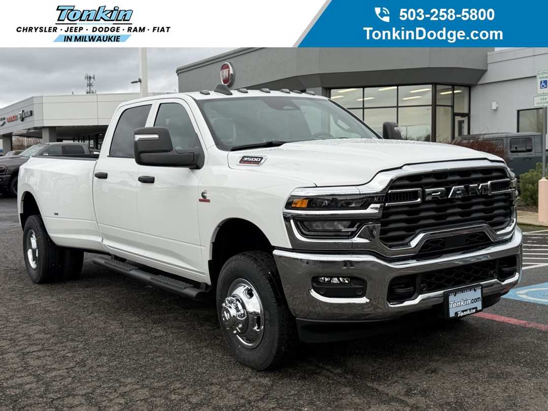 $10,028 off MSRP!2026 Ram 3500 Tradesman Bright White Clearcoat 115-Volt Auxiliary Front Power Outlet, 12" Touchscreen Display, 2 Way Rear Headrest Seat, 4 Way Front Headrests, 4-Wheel Disc Brakes, 40/20/40 Split Bench Seat, 400W Inverter, 4G LTE Wi-Fi Hot Spot, 50 Gallon Fuel Tank, 5th Wheel/Gooseneck Towing Prep Group, 6 Speakers, 6000# Front Axle with Hub Extension, ABS brakes, Air Conditioning, Air Conditioning ATC with Dual Zone Control, Alexa Built-in, AM/FM radio: SiriusXM, Apple CarPlay, Apple CarPlay/Android Auto, Auto-Dimming Rear-View Mirror, Bed Convenience Group, Black Exterior Mirrors, Black Premium Wheels, Box and Rear Fender Clearance Lamps, Brake assist, Bright Front Bumper, Bright Rear Bumper, Bright Wheel Skins, Carpet Floor Covering, Center Hub, Chrome Grille Surround, Clearance Lamps, Cloth 40/20/40 Bench Seat, Commercial Features Package, Compass, Connected Travel and Traffic Services, Connectivity - US/Canada, Convenience Group, Delay-off headlights, Disassociated Touchscreen Display, Driver door bin, Dual front impact airbags, Dual front side impact airbags, Dual Rear Wheels, Electronic Stability Control, Emergency Vehicle Alert System (EVAS), Exterior 115V AC Outlet, Exterior Mirrors Courtesy Lamps, Exterior Mirrors with Heating Element, Exterior Mirrors with Supplemental Signals, For Details Visit DriveUconnect.com, For More Info, Call 800-643-2112, Front and Rear Floor Mats, Front anti-roll bar, Front Armrest with Cupholders, Front Center Armrest w/Storage, Front fog lights, Front License Plate Bracket, Front reading lights, Fully automatic headlights, Global Telematics Box Module, Google Android Auto, GPS Antenna Input, GPS Navigation, HD Radio, Illuminated entry, Integrated Voice Command with Bluetooth, LED Bed Lighting, Low tire pressure warning, Manual Adjust 4-Way Driver Seat, Manual Adjust 4-Way Front Passenger Seat, Manual Folding Exterior Mirrors, Matte Black Mesh with Chrome Grille, Max Tow Package, Mirror Running Lights, Mopar Black Tubular Side Steps, MOPAR Spray in Bedliner, MyFlexCare Service Diesel, Nexen Brand Tires, Occupant sensing airbag, Off-Road Information Pages, Outside temperature display, Overhead airbag, Overhead console, Panic alarm, ParkSense Front/Rear Park Assist System, ParkView Rear Back-Up Camera, Passenger door bin, Passenger vanity mirror, Power Adjust Mirrors, Power Heat Fold Telescopic Mirrors, Power steering, Power windows, Power-Adjustable Convex Aux Mirrors, Quick Order Package 24A Tradesman, Radio data system, Radio: Uconnect 5 Navigation with 12.0" Display, Radio: Uconnect 5 with 8.4" Display, Rear Folding Seat, Rear Power Sliding Window, Rear step bumper, Rear Wheelhouse Liners, Rear window defroster, Remote keyless entry, Remote USB Port - Charge Only, Selectable Tire Fill Alert, SiriusXM Radio Service, SiriusXM with 360L, Speed control, Storage Tray, Tachometer, Tilt steering wheel, Tinted Acoustic Windshield Glass, Traction control, Tradesman Level 2A Equipment Group, Trailer Tow Pages, Variably intermittent wipers, Voltmeter, Wheels: 17" x 6.0" Steel Chrome Clad, Wheels: 18" x 8.0" Black Painted Steel. Price includes: $1000 - 2026 National Bonus Cash . Exp. 03/02/2026