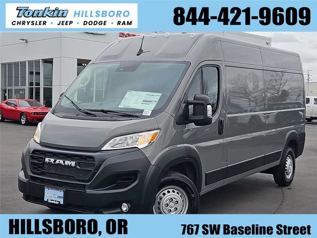 2026 Ram ProMaster 2500 High Roof Ceramic Gray Clearcoat 3.6L V6 24V VVT FWD 9-Speed Automatic100 Amp Battery, 115V Auxiliary Power Outlet, 12V Rear Auxiliary Power Outlet, 220 Amp Alternator, 4 Speakers, 4-Way Manual Adjust Front Passenger Seat, 4-Wheel Disc Brakes, 4.08 Axle Ratio, 4G LTE Wi-Fi Hotspot, ABS brakes, Adaptive Cruise Control with Stop and Go, Air Conditioning, AM/FM radio: SiriusXM, Apple CarPlay, Apple CarPlay/Android Auto, Black/Gray Seats, Bodyside moldings, Brake assist, Cargo Storage Headliner, Cloth Bucket Seats, Connectivity - US/Canada, Convenience Group, Driver door bin, Driver Seat Armrest, Driver's Seat Mounted Armrest, Electronic Stability Control, Exterior Mirrors with Heating Element, Exterior Mirrors with Supplemental Signals, For Details, Visit DriveUconnect.com, For More Info, Call 800-643-2112, Front anti-roll bar, Front Bucket Seats, Front Fog Lamps, Front License Plate Bracket, Front reading lights, Front wheel independent suspension, Global Telematics Box Module, Google Android Auto, GPS Antenna Input, Heavy Duty Suspension, Illuminated entry, Integrated Center Stack Radio, Low tire pressure warning, MyFlexCare Service Plan, Outside temperature display, Overhead airbag, Overhead console, ParkView Rear Back-Up Camera, Passenger Bucket Seat, Passenger door bin, Power Adjust Mirrors, Power Folding/Heated Mirrors, Power Group, Power steering, Power windows, Power-Adjustable Convex Aux Mirrors, Power-Folding Mirrors, Quick Order Package 22B Tradesman, Radio: Uconnect 5 with 7" Display, Rear Cargo LED Lamp, Remote keyless entry, SiriusXM Radio Service, Steering wheel mounted audio controls, Tachometer, Telescoping steering wheel, Traction control, Trip computer, Turn signal indicator mirrors, Variably intermittent wipers, Wheel Center Cap, Wheels: 16" x 6.0" Steel. Price includes: $4000 - 2026 National Bonus Cash . Exp. 03/02/2026