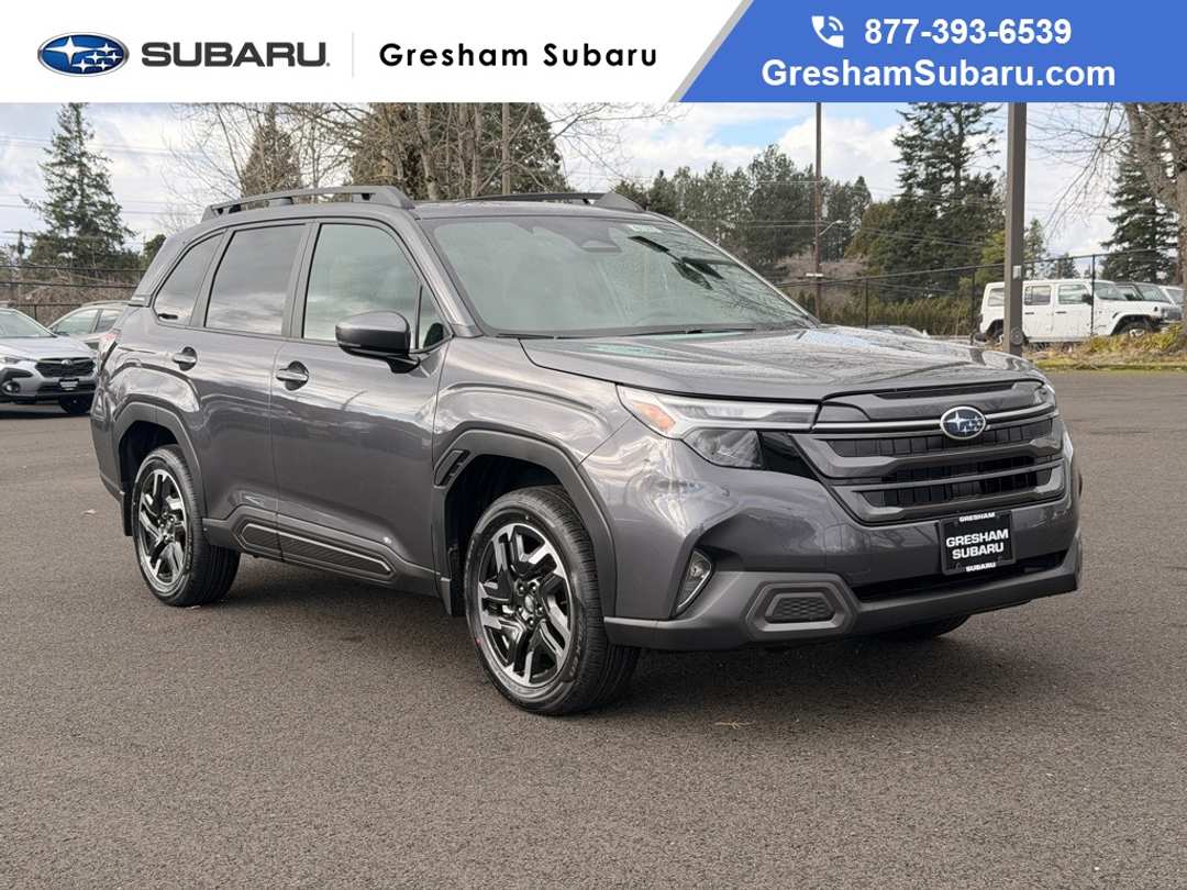 4-Wheel Disc Brakes, 6 Speakers, ABS brakes, Air Conditioning, All-Weather Floor Liners, Alloy wheels, AM/FM radio: SiriusXM with 360L, Anti-whiplash front head restraints, Auto High-beam Headlights, Auto-Dimming Mirror with Compass and HomeLink, Automatic temperature control, Brake assist, Bumpers: body-color, Cargo Tray, Driver door bin, Driver vanity mirror, Dual front impact airbags, Dual front side impact airbags, Electronic Stability Control, Emergency communication system: MySubaru Companion (5-years free), Exterior Parking Camera Rear, Four wheel independent suspension, Front anti-roll bar, Front Bucket Seats, Front Center Armrest, Front dual zone A/C, Front fog lights, Front reading lights, Fully automatic headlights, Harman/Kardon Speaker System and Navigation and Reverse Automatic Braking, Heated door mirrors, Heated Front Bucket Seats, Heated front seats, Heated steering wheel, Illuminated entry, Knee airbag, Leather steering wheel, Low tire pressure warning, Occupant sensing airbag, Outside temperature display, Overhead airbag, Overhead console, Panic alarm, Passenger door bin, Passenger vanity mirror, Perforated Leather-Trimmed Upholstery, Power door mirrors, Power driver seat, Power Liftgate, Power moonroof: Panoramic, Power passenger seat, Power steering, Power windows, Radio data system, Radio: Subaru 11.6" Multimedia Navigation System, Radio: Subaru 11.6" Multimedia Plus System, Rain sensing wipers, Rear anti-roll bar, Rear Bumper Cover, Rear seat center armrest, Rear Seatback Protector, Rear window defroster, Rear window wiper, Remote keyless entry, Reverse Automatic Braking (RAB) System, Security system, Speed control, Speed-sensing steering, Splash Guards, Split folding rear seat, Spoiler, Steering wheel mounted audio controls, Tachometer, Telescoping steering wheel, Tilt steering wheel, Traction control, Trip computer, Turn signal indicator mirrors, Variably intermittent wipers, Wheels: 18" x 7.0 J Dark Metallic Aluminum-Alloy. 2026 Subaru Forester Limited 4D Sport Utility Lineartronic CVT 2.5L 4-Cylinder DOHC 16V AWD MgmVisit Gresham Subaru online at www.GreshamSubaru.com and see why we service Portland and Vancouver as The BIG Subaru Store with the SMALL Prices!!!