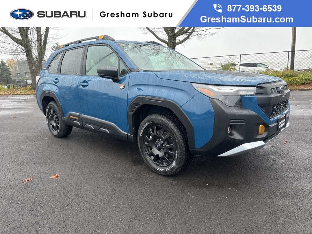 4-Wheel Disc Brakes, 6 Speakers, ABS brakes, Air Conditioning, Alloy wheels, AM/FM radio: SiriusXM with 360L, Anti-whiplash front head restraints, Auto High-beam Headlights, Auto-Dimming Exterior Mirror with Approach Light, Auto-Dimming Mirror with Compass and HomeLink, Automatic temperature control, Brake assist, Bumpers: body-color, Carpeted Floor Mats - Wilderness, Driver door bin, Driver vanity mirror, Dual front impact airbags, Dual front side impact airbags, Electronic Stability Control, Emergency communication system: MySubaru Companion (5-years free), Exterior Parking Camera Rear, Four wheel independent suspension, Front anti-roll bar, Front Bucket Seats, Front Center Armrest, Front dual zone A/C, Front fog lights, Front reading lights, Fully automatic headlights, Harman/Kardon Speaker System and Power Rear Gate, Heated door mirrors, Heated Front Bucket Seats, Heated front seats, Illuminated entry, Knee airbag, LED Upgrade, Low tire pressure warning, Occupant sensing airbag, Outside temperature display, Overhead airbag, Overhead console, Panic alarm, Passenger door bin, Passenger vanity mirror, Power door mirrors, Power driver seat, Power moonroof: Panoramic, Power Rear Gate, Power steering, Power windows, Radio data system, Radio: Subaru 11.6" Multimedia Navigation System, Radio: Subaru 11.6" Multimedia Plus System, Rain sensing wipers, Rear anti-roll bar, Rear seat center armrest, Rear Seatback Protector, Rear window defroster, Rear window wiper, Remote keyless entry, Security system, Speed control, Speed-sensing steering, Split folding rear seat, Spoiler, Steering wheel mounted audio controls, Tachometer, Telescoping steering wheel, Textured StarTex Upholstery, Tilt steering wheel, Traction control, Trip computer, Turn signal indicator mirrors, Variably intermittent wipers, Wheels: 17" x 7.0 J Matte Black Finish Aluminum-Alloy. 2026 Subaru Forester Wilderness 4D Sport Utility Lineartronic CVT 2.5L 4-Cylinder DOHC 16V AWD Geyser BlueVisit Gresham Subaru online at www.GreshamSubaru.com and see why we service Portland and Vancouver as The BIG Subaru Store with the SMALL Prices!!!