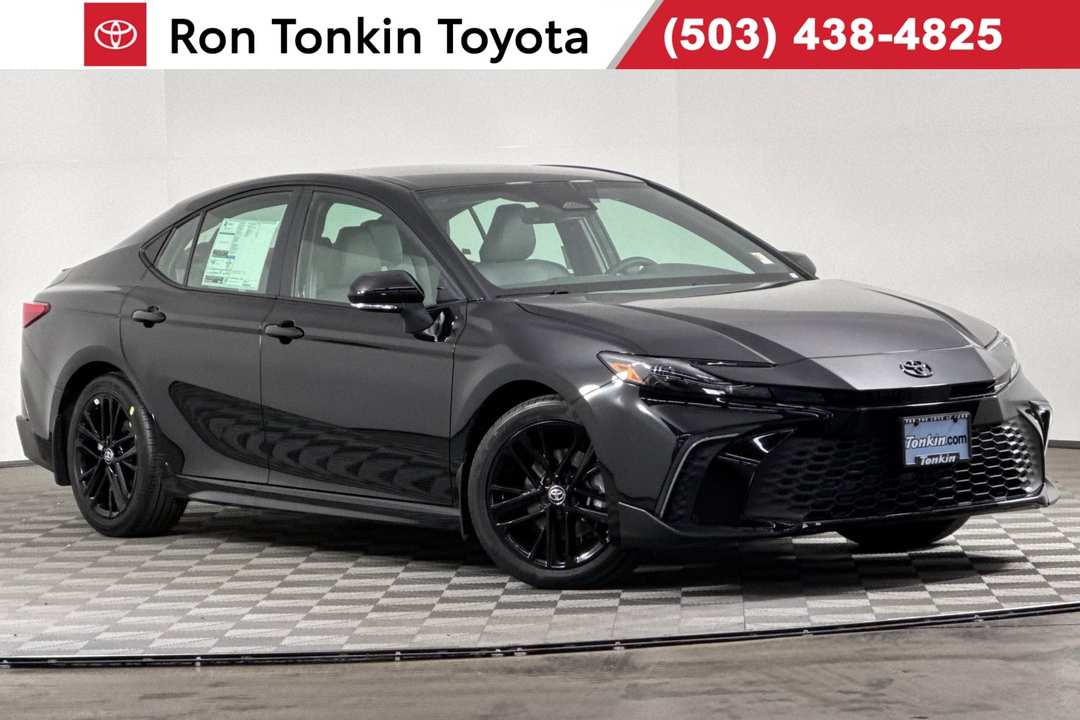 2026 Toyota Camry 2.5L 4-Cylinder 16V DOHC eCVT FWD SE 4D Sedan Midnight Black 4-Wheel Disc Brakes, 6 Speakers, ABS brakes, Air Conditioning, All Weather Floor Protection, Alloy wheels, AM/FM radio: SiriusXM, Apple CarPlay/Android Auto, Auto High-beam Headlights, Auto-Dimming Rearview Mirror with HomeLink, Automatic temperature control, Black Badge Overlays, Brake assist, Bumpers: body-color, Cold Weather Package, Convenience Package, Delay-off headlights, Door Edge Film, Door Sill Enhancement, Driver door bin, Driver vanity mirror, Dual front impact airbags, Dual front side impact airbags, Electronic Stability Control, Emergency communication system: Safety Connect (5-year trial), Exterior Parking Camera Rear, Four wheel independent suspension, Front Accent Lights, Front anti-roll bar, Front Bucket Seats, Front Center Armrest, Front dual zone A/C, Front reading lights, Front Seats, Fully automatic headlights, Heated door mirrors, Heated Front Seats, Heated Leather Steering Wheel with Paddle Shifters, Illuminated entry, Knee airbag, Leather Shift Knob, Leather steering wheel, Low tire pressure warning, Mudguards, Multimedia Glass Screen Protector, Occupant sensing airbag, Outside temperature display, Overhead airbag, Overhead console, Panic alarm, Passenger door bin, Passenger vanity mirror, Power door mirrors, Power driver seat, Power steering, Power windows, Radio data system, Radio: 12.3" Toyota Multimedia Audio, Radio: 8" Toyota Audio Multimedia, Rear anti-roll bar, Rear reading lights, Rear seat center armrest, Rear window defroster, Remote keyless entry, Security system, Smart Key System on Front Doors, SofTex and Fabric Seat Trim, Speed control, Speed-sensing steering, Split folding rear seat, Spoiler, Steering wheel mounted audio controls, Telescoping steering wheel, Tilt steering wheel, Traction control, Trip computer, Turn signal indicator mirrors, Variably intermittent wipers, Wheels: 18" Multi-Spoke Black-Finished Alloy. 48/47 City/Highway MPG 48/47 City/Highway MPGSome factory rebates may require factory financing, some special finance or lease rates are in lieu of factory rebates of specific make or model vehicles. Tax, title, licensing, documentation fee of $200, and dealer installed accessories are not included. Prices not available for Fleet or Commercial business's. Please confirm the accuracy of the included equipment by calling us prior to purchase. Price does not include Tax, Title, and License. Price includes dealer added accessories.