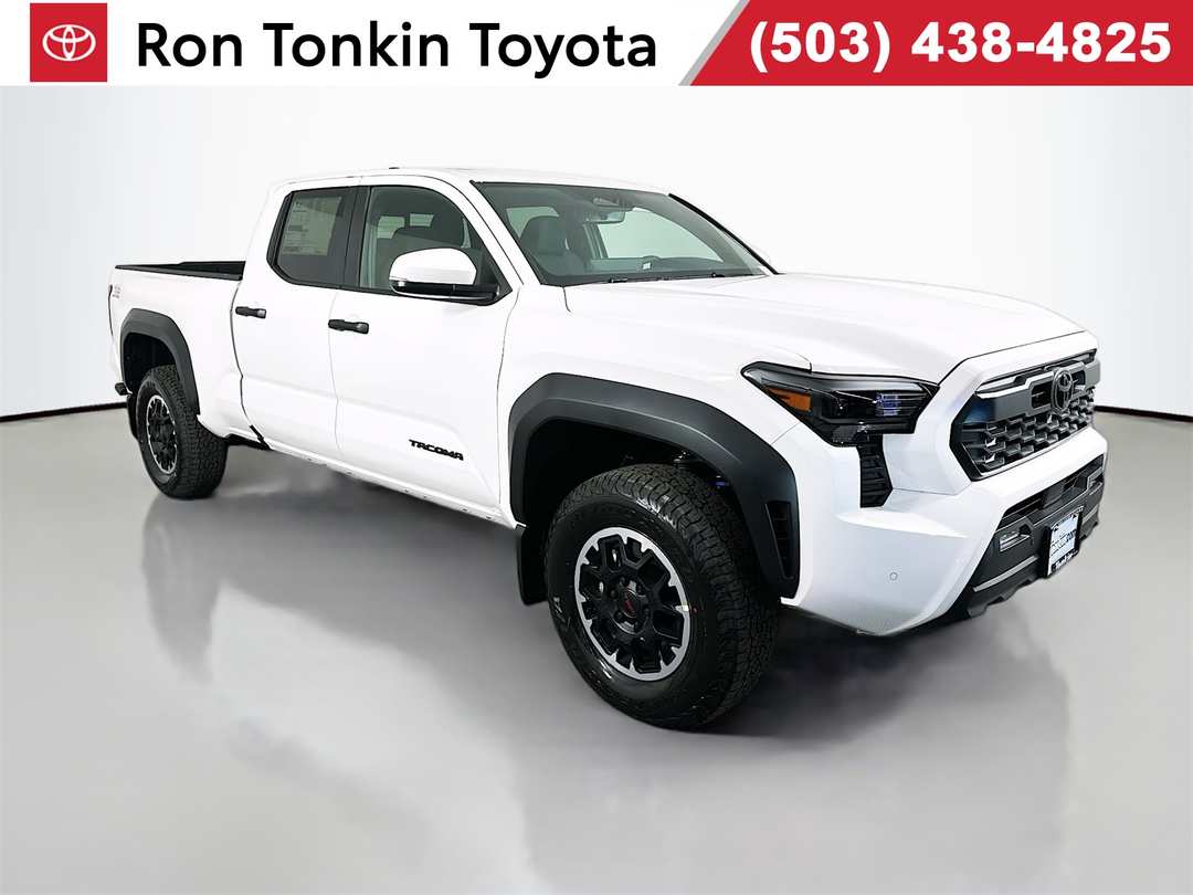 2026 Toyota Tacoma 2.4L 4-Cylinder 8-Speed Automatic 4WD TRD Off-Road 4D Double Cab White 18" Wheels, 3.583 Axle Ratio, 4-Wheel Disc Brakes, 6 Speakers, ABS brakes, Air Conditioning, Alloy wheels, AM/FM radio: SiriusXM, Anti-whiplash front head restraints, Apple CarPlay/Android Auto, Auto High-beam Headlights, Auto-dimming Rear-View mirror, Automatic temperature control, Bed Step, Black Tailgate Insert, Brake assist, Bumpers: body-color, Door Panel Scuff Protector, Driver door bin, Driver vanity mirror, Dual front impact airbags, Dual front side impact airbags, Electronic Stability Control, Emergency communication system: Safety Connect (up to 10-year trial subscription), Exterior Parking Camera Rear, Fabric Seat Trim, Four wheel independent suspension, Front anti-roll bar, Front Bucket Seats, Front Center Armrest, Front fog lights, Front reading lights, Fully automatic headlights, Heated door mirrors, Illuminated entry, Integrated Trailer Brake Controller, JBL Premium Audio, Knee airbag, Leather Shift Knob, Leather steering wheel, Long Bed with Inverter, Low tire pressure warning, Moon Roof, Mudguards, Multimedia Glass Screen Protector, Occupant sensing airbag, Outside temperature display, Overhead airbag, Overhead console, Panic alarm, Passenger door bin, Passenger vanity mirror, Power door mirrors, Power Horizontal Rear Window, Power steering, Power windows, Pre-Wire Accommodation (bed Power Port), Radio: 8" Toyota Audio Multimedia, Rear step bumper, Rear window defroster, Remote keyless entry, Security system, Smart Key w/Digital Key Technology, SofTex Seat Trim, Speed control, Speed-sensing steering, Split folding rear seat, Spray-on Bed Liner, Steering wheel mounted audio controls, Tachometer, Telescoping steering wheel, Tilt steering wheel, Traction control, TRD Off Road Upgrade Package, Trip computer, Turn signal indicator mirrors, Variably intermittent wipers. 19/23 City/Highway MPGSome factory rebates may require factory financing, some special finance or lease rates are in lieu of factory rebates of specific make or model vehicles. Tax, title, licensing, documentation fee of $200, and dealer installed accessories are not included. Prices not available for Fleet or Commercial business's. Please confirm the accuracy of the included equipment by calling us prior to purchase. Price does not include Tax, Title, and License.