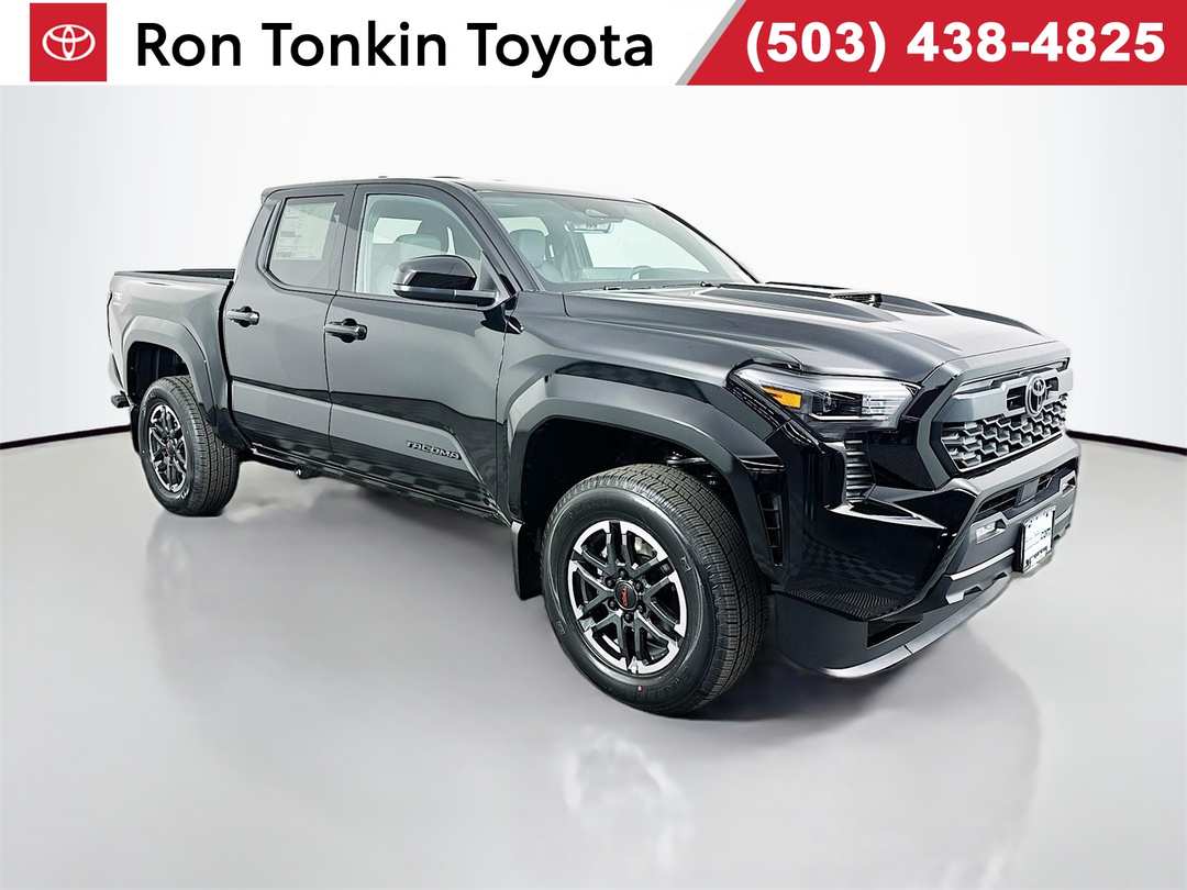 2026 Toyota Tacoma 2.4L 4-Cylinder 8-Speed Automatic 4WD TRD Sport 4D Double Cab Black 3.583 Axle Ratio, 4-Wheel Disc Brakes, 6 Speakers, ABS brakes, Air Conditioning, All Weather Floor Liners, Alloy wheels, AM/FM radio: SiriusXM, Anti-whiplash front head restraints, Apple CarPlay/Android Auto, Auto High-beam Headlights, Auto-dimming Rear-View mirror, Automatic temperature control, Bed Step, Black Tailgate Insert, Brake assist, Bumpers: body-color, Door Edge Film, Door Panel Scuff Protector, Driver door bin, Driver vanity mirror, Dual front impact airbags, Dual front side impact airbags, Electronic Stability Control, Emergency communication system: Safety Connect (up to 10-year trial subscription), Exterior Parking Camera Rear, Fabric Seat Trim, Four wheel independent suspension, Front anti-roll bar, Front Bucket Seats, Front Center Armrest, Front fog lights, Front reading lights, Fully automatic headlights, Heated door mirrors, Illuminated entry, JBL Premium Audio, Knee airbag, Leather Shift Knob, Leather steering wheel, Low tire pressure warning, Mudguards, Multimedia Glass Screen Protector, Occupant sensing airbag, Outside temperature display, Overhead airbag, Overhead console, Panic alarm, Passenger door bin, Passenger vanity mirror, Power door mirrors, Power steering, Power windows, Radio: 8" Toyota Audio Multimedia, Radio: Premium Audio with 14" Display, Rear step bumper, Rear window defroster, Remote keyless entry, Security system, SofTex Seat Trim, Speed control, Speed-sensing steering, Split folding rear seat, Spray-on Bed Liner, Steering wheel mounted audio controls, Tachometer, Telescoping steering wheel, Tilt steering wheel, Traction control, TRD Sport Package, Trip computer, Turn signal indicator mirrors, Variably intermittent wipers, Wheels: 18" TRD Sport Alloy. 19/23 City/Highway MPGSome factory rebates may require factory financing, some special finance or lease rates are in lieu of factory rebates of specific make or model vehicles. Tax, title, licensing, documentation fee of $200, and dealer installed accessories are not included. Prices not available for Fleet or Commercial business's. Please confirm the accuracy of the included equipment by calling us prior to purchase. Price does not include Tax, Title, and License.