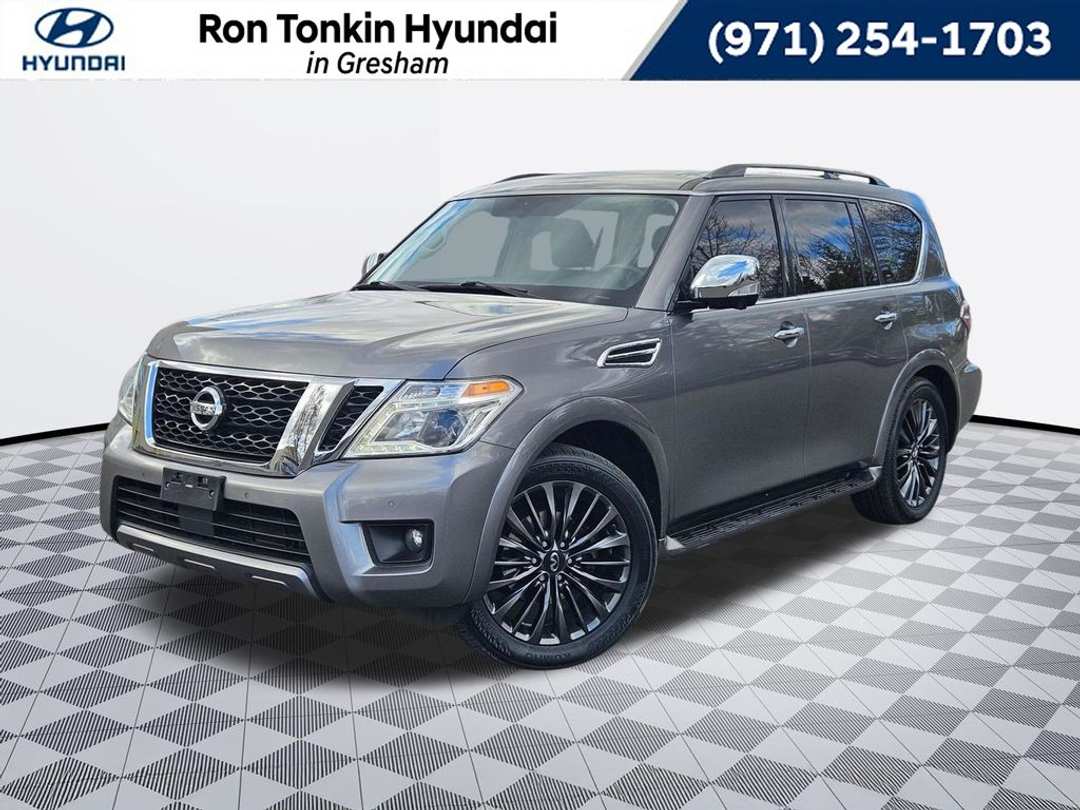 Recent Arrival! 2020 Nissan Armada SL 5.6L V8 7-Speed Automatic 4WD 4D Sport Utility Gun Metallic 4WD, 2nd Row Captain's Chairs, 2nd Row Center Console w/Padded Armrest, Blind Spot Warning, Captain's Chairs Package, Intelligent Back-Up Intervention (I-BI), Intelligent Distance Control (I-DC), Navigation System, Power Sliding Moonroof w/Front Tilt & Rear Slide, Premium Package, Rear Cross Traffic Alert (RCTA), 13 Speakers, 20" Painted Alloy Wheels, 3rd Row Carpeted Floor Mats - Captain Seat, 3rd row seats: split-bench, 4-Wheel Disc Brakes, ABS brakes, Air Conditioning, Alloy wheels, AM/FM radio: SiriusXM, Anti-whiplash front head restraints, Auto tilt-away steering wheel, Auto-dimming door mirrors, Auto-dimming Rear-View mirror, Auto-leveling suspension, Automatic temperature control, Axle Ratio: 2.94, Brake assist, Bumpers: body-color, CD player, Delay-off headlights, Driver door bin, Driver vanity mirror, Dual front impact airbags, Dual front side impact airbags, DVD-Audio, Electronic Stability Control, Emergency communication system: NissanConnect Services, Exterior Parking Camera Rear, Four wheel independent suspension, Front anti-roll bar, Front Bucket Seats, Front Center Armrest, Front dual zone A/C, Front fog lights, Front reading lights, Fully automatic headlights, Garage door transmitter: HomeLink, Heated door mirrors, Heated Front Bucket Seats w/Power Driver's Memory, Heated front seats, Illuminated entry, Leather Shift Knob, Leather-Appointed Seat Trim, Low tire pressure warning, Memory seat, Occupant sensing airbag, Outside temperature display, Overhead airbag, Overhead console, Panic alarm, Passenger door bin, Passenger vanity mirror, Power door mirrors, Power driver seat, Power Liftgate, Power passenger seat, Power steering, Power windows, Radio data system, Radio: AM/FM/SXM/CD/MP3/HD, Rain sensing wipers, Rear air conditioning, Rear anti-roll bar, Rear reading lights, Rear seat center armrest, Rear window defroster, Rear window wiper, Reclining 3rd row seat, Remote keyless entry, Security system, Speed control, Speed-sensing steering, Speed-Sensitive Wipers, Split folding rear seat, Spoiler, Steering wheel memory, Steering wheel mounted audio controls, Tachometer, Telescoping steering wheel, Tilt steering wheel, Traction control, Trip computer, Turn signal indicator mirrors, Variably intermittent wipers, Voltmeter, 4WD, 2nd Row Captain's Chairs, 2nd Row Center Console w/Padded Armrest, Blind Spot Warning, Captain's Chairs Package, Intelligent Back-Up Intervention (I-BI), Intelligent Distance Control (I-DC), Navigation System, Power Sliding Moonroof w/Front Tilt & Rear Slide, Premium Package, Rear Cross Traffic Alert (RCTA). Call for availability. Come in to Ron Tonkin Gresham Hyundai to test drive today! DA2028 View our entire inventory at https://www.rontonkinhyundai.com/