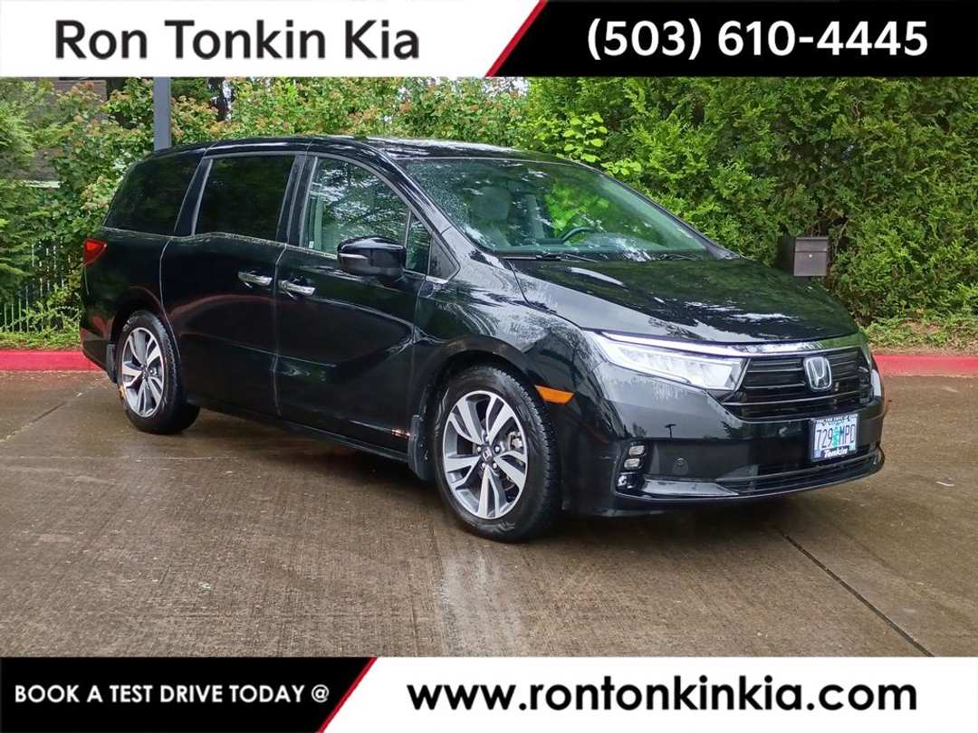 2021 Honda Odyssey Touring Black 3.5L V6 SOHC i-VTEC 24V 3.61 Axle Ratio, 3rd row seats: split-bench, 4-Wheel Disc Brakes, 7 Speakers, A/V remote: CabinControl, ABS brakes, Adaptive Cruise Control: Adaptive Cruise Control (ACC) with Low-Speed Follow, Air Conditioning, Alloy wheels, AM/FM radio: SiriusXM, Anti-whiplash front head restraints, Apple CarPlay/Android Auto, Auto High-beam Headlights, Auto-dimming Rear-View mirror, Automatic temperature control, Blind Spot Information (BSI) System warning, Brake assist, Bumpers: body-color, CD player, Compass, Delay-off headlights, Driver door bin, Driver vanity mirror, Driver's Seat Mounted Armrest, Dual front impact airbags, Dual front side impact airbags, DVD-Audio, Electronic Stability Control, Emergency communication system: HondaLink, Exterior Parking Camera Rear, Forward collision: Collision Mitigation Braking System (CMBS) + FCW mitigation, Four wheel independent suspension, Front anti-roll bar, Front Bucket Seats, Front dual zone A/C, Front fog lights, Front reading lights, Fully automatic headlights, Garage door transmitter: HomeLink, Headphones, Heated door mirrors, Heated Front Bucket Seats, Heated front seats, Illuminated entry, Knee airbag, Lane departure: Lane Keeping Assist System (LKAS) active, Leather Seat Trim, Leather steering wheel, Low tire pressure warning, Memory seat, Navigation system: Honda Satellite-Linked Navigation System, Occupant sensing airbag, Outside temperature display, Overhead airbag, Overhead console, Panic alarm, Passenger door bin, Passenger seat mounted armrest, Passenger vanity mirror, Power door mirrors, Power driver seat, Power Liftgate, Power moonroof, Power passenger seat, Power steering, Power windows, Radio data system, Radio: 160-Watt AM/FM/HD/SiriusXM Audio System, Rear air conditioning, Rear anti-roll bar, Rear audio controls, Rear reading lights, Rear seat center armrest, Rear window defroster, Rear window wiper, Reclining 3rd row seat, Remote keyless entry, Security system, Speed control, Speed-sensing steering, Speed-Sensitive Wipers, Split folding rear seat, Spoiler, Steering wheel mounted audio controls, Tachometer, Telescoping steering wheel, Tilt steering wheel, Traction control, Trip computer, Turn signal indicator mirrors, Variably intermittent wipers, Wheels: 19" Machine-Finished Alloy.19/28 City/Highway MPG 19/28 City/Highway MPGAwards: * ALG Residual Value Awards, Residual Value AwardsCome See us today and Drive! RON TONKIN KIA 19335 SE MCLOUGHLIN BLVD GLADSTONE, OR 97027.