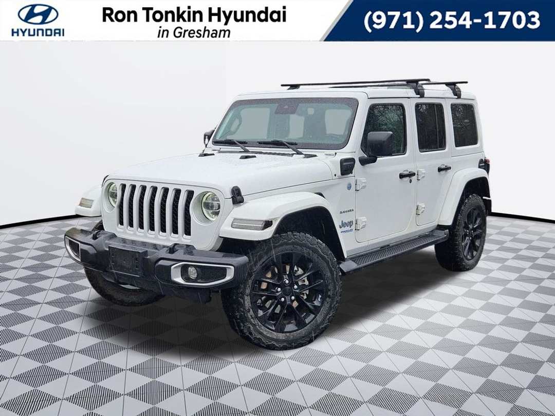 Recent Arrival! 2021 Jeep Wrangler Unlimited Sahara 4xe 2.0L I4 DOHC 8-Speed Automatic 4WD 4D Sport Utility Bright White Clearcoat One-Owner, Clean Carfax, low miles, Heated Seats, 2.0L I4 DOHC, 7 & 4 Pin Wiring Harness, 700 Amp Maintenance Free Battery, Adaptive Cruise Control w/Stop, Advanced Brake Assist, Advanced Safety Group, Auto High Beam Headlamp Control, Auxiliary Switches, Blind Spot & Cross Path Detection, Body Color 3-Piece Hard Top, Class II Receiver Hitch, Cold Weather Group, Freedom Panel Storage Bag, Full Speed Forward Collision Warning Plus, Heated Front Seats, Heated Steering Wheel, Navigation System, ParkSense Rear Park Assist System, Quick Order Package 29P, Rear Window Defroster, Rear Window Wiper/Washer, Remote Start System, Safety Group, Trailer Tow & HD Electrical Group, 3.73 Rear Axle Ratio, 4-Wheel Disc Brakes, 9 Speakers, ABS brakes, Air Conditioning, Alloy wheels, AM/FM radio, Anti-Spin Differential Rear Axle, Apple CarPlay/Android Auto, Auto-dimming Rear-View mirror, Automatic temperature control, Brake assist, Compass, Delay-off headlights, Driver door bin, Driver vanity mirror, Dual front impact airbags, Dual front side impact airbags, Electronic Stability Control, Emergency communication system: SiriusXM Guardian, Front anti-roll bar, Front Bucket Seats, Front Center Armrest w/Storage, Front dual zone A/C, Front fog lights, Front License Plate Bracket, Front reading lights, Fully automatic headlights, Garage door transmitter, Heated door mirrors, Illuminated entry, Integrated roll-over protection, Jeep Trail Rated Kit, Leather Shift Knob, Leather steering wheel, Leather Trimmed Seats w/Sahara Logo, Leather Wrapped Park Brake Handle, Low tire pressure warning, Manufacturer's Statement of Origin, Occupant sensing airbag, Outside temperature display, Panic alarm, ParkView Rear Back-Up Camera, Passenger door bin, Passenger vanity mirror, Power door mirrors, Power steering, Power windows, Radio data system, Radio: Uconnect 4C Nav w/8.4" Display, Rear anti-roll bar, Rear reading lights, Rear seat center armrest, Remote keyless entry, Remote Proximity Keyless Entry, Security system, Speed control, Split folding rear seat, Sport Suspension, Steering wheel mounted audio controls, Tachometer, Telescoping steering wheel, Tilt steering wheel, Traction control, Trip computer, Variably intermittent wipers, Voltmeter, Wheels: 20" x 8" Fully Painted Aluminum, 2.0L I4 DOHC, 7 & 4 Pin Wiring Harness, 700 Amp Maintenance Free Battery, Adaptive Cruise Control w/Stop, Advanced Brake Assist, Advanced Safety Group, Auto High Beam Headlamp Control, Auxiliary Switches, Blind Spot & Cross Path Detection, Body Color 3-Piece Hard Top, Class II Receiver Hitch, Cold Weather Group, Freedom Panel Storage Bag, Full Speed Forward Collision Warning Plus, Heated Front Seats, Heated Steering Wheel, Navigation System, ParkSense Rear Park Assist System, Quick Order Package 29P, Rear Window Defroster, Rear Window Wiper/Washer, Remote Start System, Safety Group, Trailer Tow & HD Electrical Group. CARFAX One-Owner. Clean CARFAX. Call for availability. Come in to Ron Tonkin Gresham Hyundai to test drive today! DA2028 View our entire inventory at https://www.rontonkinhyundai.com/
