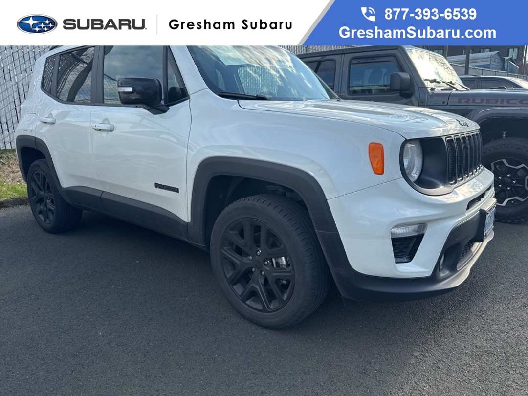 Recent Arrival! CARFAX One-Owner! 115V Auxiliary Power Outlet, 40/20/40 Rear Seat w/Trunk Pass-Thru, Auto-Dimming Rear-View Mirror, Black Accent Stitching, Black Headliner, Convenience Group, Deluxe Cloth High-Back Bucket Seats, Dual-Pane Panoramic Power Sunroof, Gloss Black Exterior Accents, Gloss Black Steering Wheel Bezel, Heated Front Seats, Heated Steering Wheel, Power 2-Way Driver Lumbar Adjust, Power Adjust 8-Way Driver Seat, Premium Audio, Quick Order Package 22M Altitude, Rain Sensitive Windshield Wipers, Sun/Sound Group, Wheels: 18" x 8.0" Gloss Black, Windshield Wiper De-Icer, 17" x 7.0" Aluminum Wheels, 3.734 Final Drive Ratio, 4-Wheel Disc Brakes, 6 Speakers, ABS brakes, Air Conditioning, Alloy wheels, AM/FM radio: SiriusXM, Anti-whiplash front head restraints, Apple CarPlay/Android Auto, Automatic temperature control, Brake assist, Compass, Delay-off headlights, Driver door bin, Driver vanity mirror, Dual front impact airbags, Dual front side impact airbags, Electronic Stability Control, Emergency communication system: SiriusXM Guardian, Four wheel independent suspension, Front anti-roll bar, Front Bucket Seats, Front Center Armrest, Front dual zone A/C, Front fog lights, Front reading lights, Fully automatic headlights, Heated door mirrors, Illuminated entry, Knee airbag, Low tire pressure warning, Navigation System, Normal Duty Suspension, Occupant sensing airbag, Outside temperature display, Overhead airbag, Panic alarm, ParkView Rear Back-Up Camera, Passenger door bin, Passenger vanity mirror, Power door mirrors, Power steering, Power windows, Premium Cloth Bucket Seats, Radio data system, Radio: Uconnect 4C Nav w/8.4" Display, Rear anti-roll bar, Rear window defroster, Rear window wiper, Remote keyless entry, Roof rack: rails only, Security system, Speed control, Split folding rear seat, Spoiler, Steering wheel mounted audio controls, Tachometer, Telescoping steering wheel, Tilt steering wheel, Traction control, Trip computer, Variably intermittent wipers, Voltmeter, 115V Auxiliary Power Outlet, 40/20/40 Rear Seat w/Trunk Pass-Thru, Auto-Dimming Rear-View Mirror, Black Accent Stitching, Black Headliner, Convenience Group, Deluxe Cloth High-Back Bucket Seats, Dual-Pane Panoramic Power Sunroof, Gloss Black Exterior Accents, Gloss Black Steering Wheel Bezel, Heated Front Seats, Heated Steering Wheel, Power 2-Way Driver Lumbar Adjust, Power Adjust 8-Way Driver Seat, Premium Audio, Quick Order Package 22M Altitude, Rain Sensitive Windshield Wipers, Sun/Sound Group, Wheels: 18" x 8.0" Gloss Black, Windshield Wiper De-Icer. 2022 Jeep Renegade Altitude 4D Sport Utility 1.3L I4 9-Speed 948TE Automatic 4WD Alpine White Clearcoat Clean CARFAX.