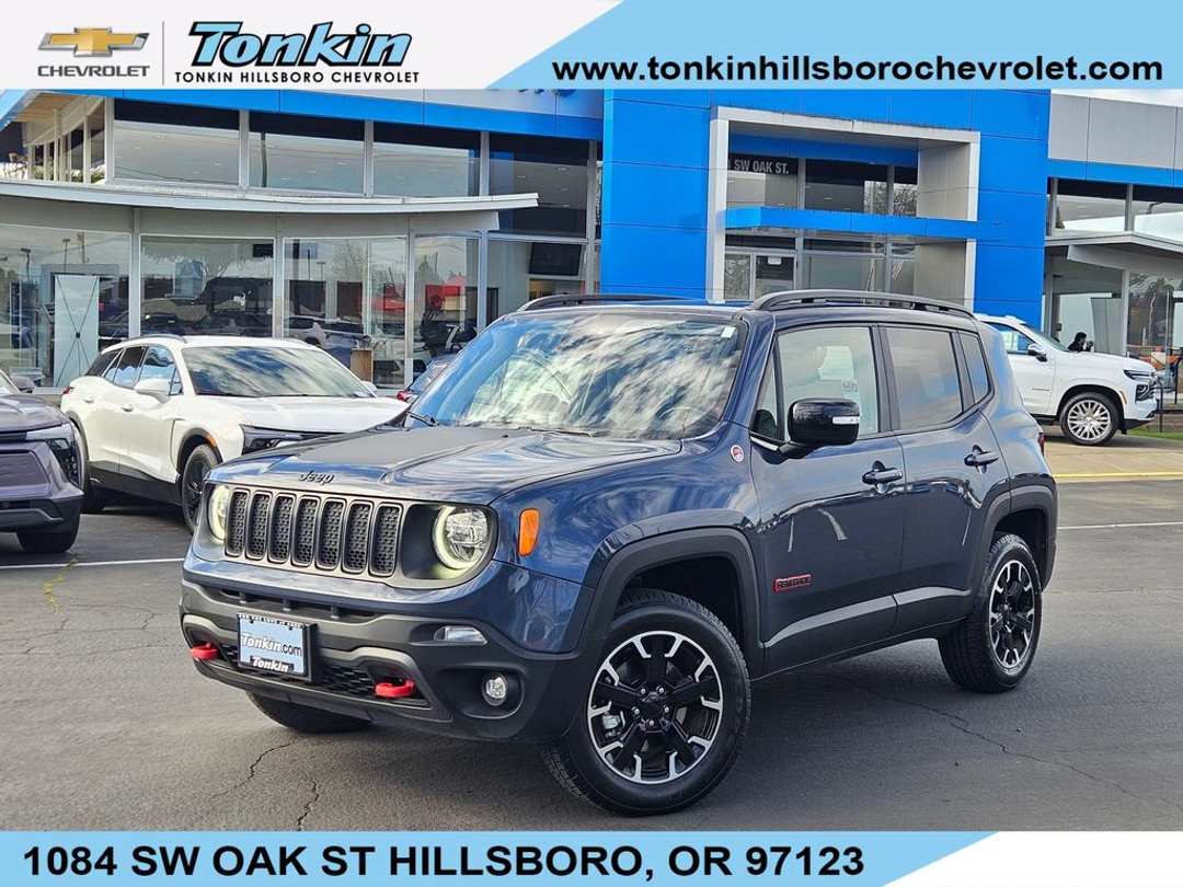 Discover the ultimate off-road companion in the 2023 Jeep Renegade Trailhawk. This rugged and capable SUV is ready to take on any adventure, with its exceptional 4WD performance and a wealth of premium features that elevate your driving experience.Tailored for the adventurous spirit, the Renegade Trailhawk boasts an impressive array of capabilities and comforts:- Premium Audio- Bi-Function LED Projector Headlamps- Dedicated LED Daytime Running Lamps- LED Cornering Fog Lamps- LED Taillamps- Heated Steering Wheel- Leather Wrapped Steering Wheel- Navigation System- Heated Front Seats- Power 2-Way Driver Lumbar Adjust- Power Adjust 8-Way Driver Seat- Premium Leather Trimmed Bucket Seats- Dual-Pane Panoramic Power Sunroof- 4 Pin Wiring Harness- Class III Receiver HitchDesigned to conquer the toughest terrain, the Renegade Trailhawk is equipped with a 1.3L I4 engine and a 9-Speed 948TE Automatic transmission, delivering impressive 4WD capabilities and an EPA-estimated 22 city / 27 highway MPG.Elevate your driving experience with the premium features and off-road prowess of the 2023 Jeep Renegade Trailhawk. This exceptional SUV is the perfect blend of rugged capability and refined comfort, ready to take you on unforgettable adventures. Contact us today to schedule a test drive and experience the Renegade Trailhawk for yourself.With its striking Blue exterior and a wealth of premium amenities, the 2023 Jeep Renegade Trailhawk is a true standout in its class. Boasting a Trailer Tow Group, Premium Lighting Group, Sun/Sound Group, and Trailhawk Elite Group, this SUV is equipped to handle any task with ease.Slip behind the wheel and enjoy the comfort of the premium leather-trimmed bucket seats, the convenience of the navigation system, and the ambiance of the dual-pane panoramic power sunroof. The Renegade Trailhawk is designed to elevate your driving experience, whether tackling the daily commute or exploring the great outdoors.With its impressive 4WD capabilities and efficient 1.3L I4 engine, the Renegade Trailhawk delivers the perfect balance of performance and fuel economy. Enjoy the confidence of advanced safety features, including Brake Assist, Electronic Stability Control, and a ParkView Rear Back-Up Camera, ensuring a secure and worry-free drive.Discover the perfect blend of rugged capability and refined comfort in the 2023 Jeep Renegade Trailhawk. Contact us today to schedule a test drive and experience the thrill of owning this exceptional SUV.