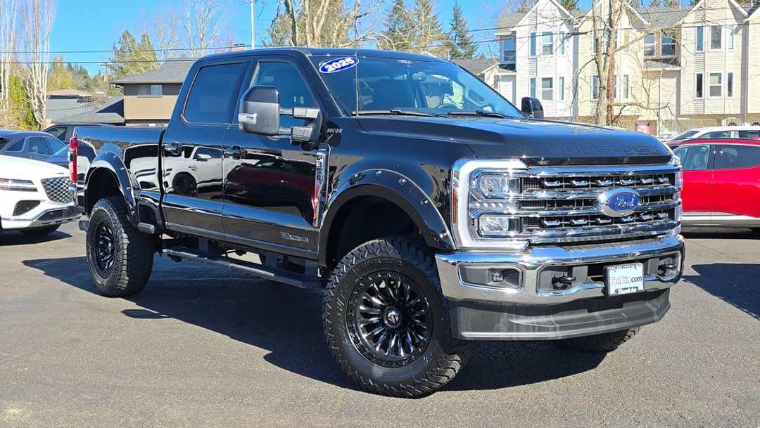 *** LARIAT *** 4.5 INCH CUSTOM LIFT KIT *** 20'' FUEL WHEELS, 35'' TIRES *** BUSHWACKER FENDER FLARES *** DUAL PANEL MOONROOF *** POWERSTROKE *** 4X4 *** 2025 Ford F-350SD Lariat 4D Crew Cab Power Stroke 6.7L V8 DI 32V OHV Turbodiesel 10-Speed Automatic 4WD Agate Black Metallic CARFAX One-Owner. 410 Amp Dual Alternators, ABS brakes, Alloy wheels, Compass, Electronic Stability Control, Electronic-Locking with 3.31 Axle Ratio, Flow-Through Console, Front ActiveX Trimmed 40/Console/40 Seats, Front dual zone A/C, GVWR: 12,000 Lb Payload Package, Heated door mirrors, Heated front seats, Heated rear seats, Illuminated entry, Low tire pressure warning, Navigation System, Order Code 618A, Radio: B&O Sound System by Bang and Olufsen, Remote keyless entry, SiriusXM Radio with 360L, SYNC 4 with Enhanced Voice Recognition, Traction control, Ventilated front seats.Genesis Of Portland. 2025 Ford F-350SD Lariat Conveniently located to Portland, Beaverton, Hillsboro, Aloha, Lake Oswego, Tigard, Tualatin, Milwaukie, Wilsonville, Clackamas, Gresham, West Slope, Raleigh Hills, Vancouver.
